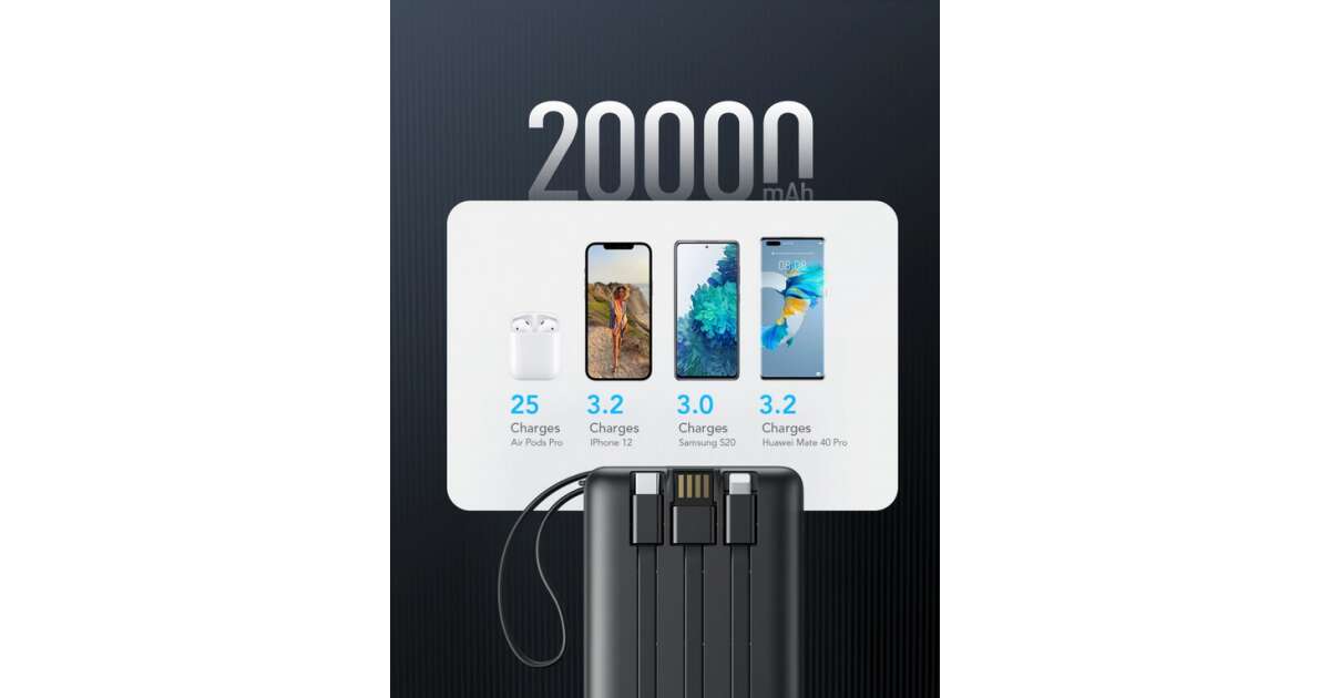 Veger C20 20000mAh Power Bank: Cu 4 Cabluri și Display LED - Încărcați Mai Multe Dispozitive Simultant! ⚡