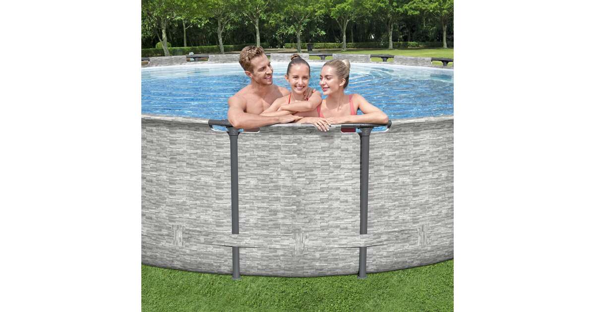 Bucură-te de vară cu această piscină supraterană Bestway Steel Pro MAX de mari dimensiuni, ușor de asamblat! Pereții piscinei, fabricați din material DuraPlus™ robust, sunt extrem de durabili și rezistenți, iar FrameLink System™ previne coroziunea. Designul realist cu aspect de piatră conferă piscinei un aspect elegant, care se potrivește perfect în orice grădină.