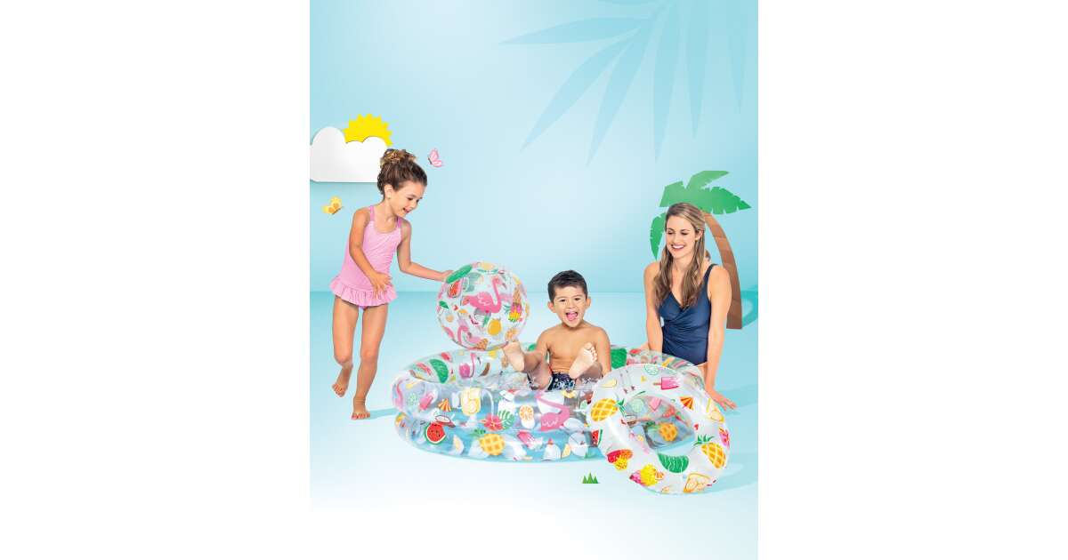 Acest set de piscină gonflabilă cu model vesel de fructe este perfect pentru zilele toride de vară! Dimensiunea sa mică este ideală pentru grădină sau terasă, astfel încât cei mici se pot bucura de o bălăceală răcoritoare oricând. Setul include o piscină de 122x25 cm, o minge gonflabilă de 51 cm și o colac de înot de 51 cm, astfel încât distracția este garantată!