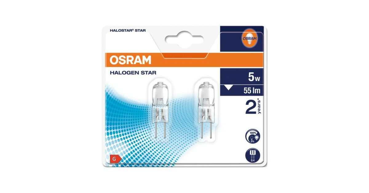 Două becuri halogen OSRAM G4, cu care poți îmbunătăți imediat atmosfera casei tale. Pachetul include cele două becuri. Pregătește-te pentru o lumină plăcută, albă caldă! 😊