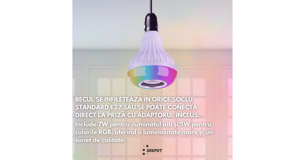 Bec inteligent RGB LED cu difuzor Bluetooth încorporat 💡🎶