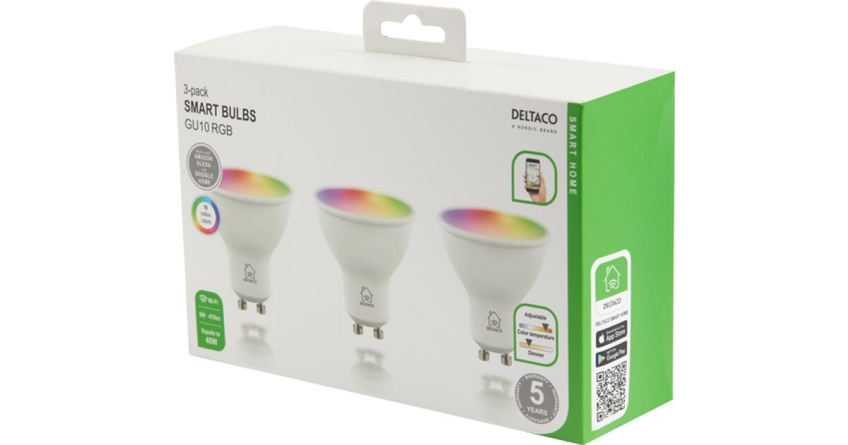 -Deltaco Smart LED Spot Bulb 5W 470lm 2700-6500K GU10 - RGB (3db / pachet) Descriere