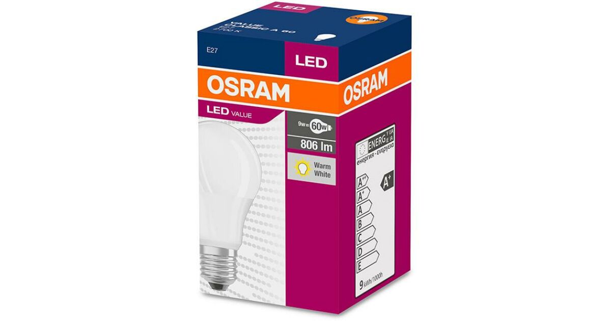 -Osram E27 LED Value 9W 806lm 2700K alb cald 220° - înlocuiește becul de 60W Descriere