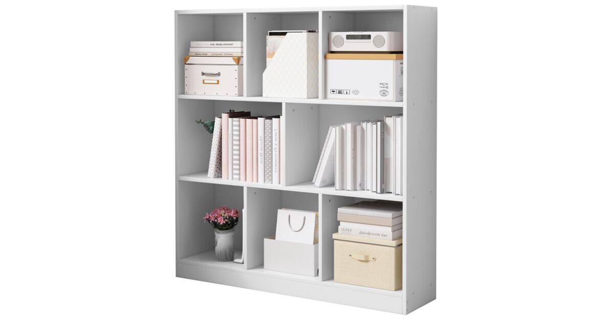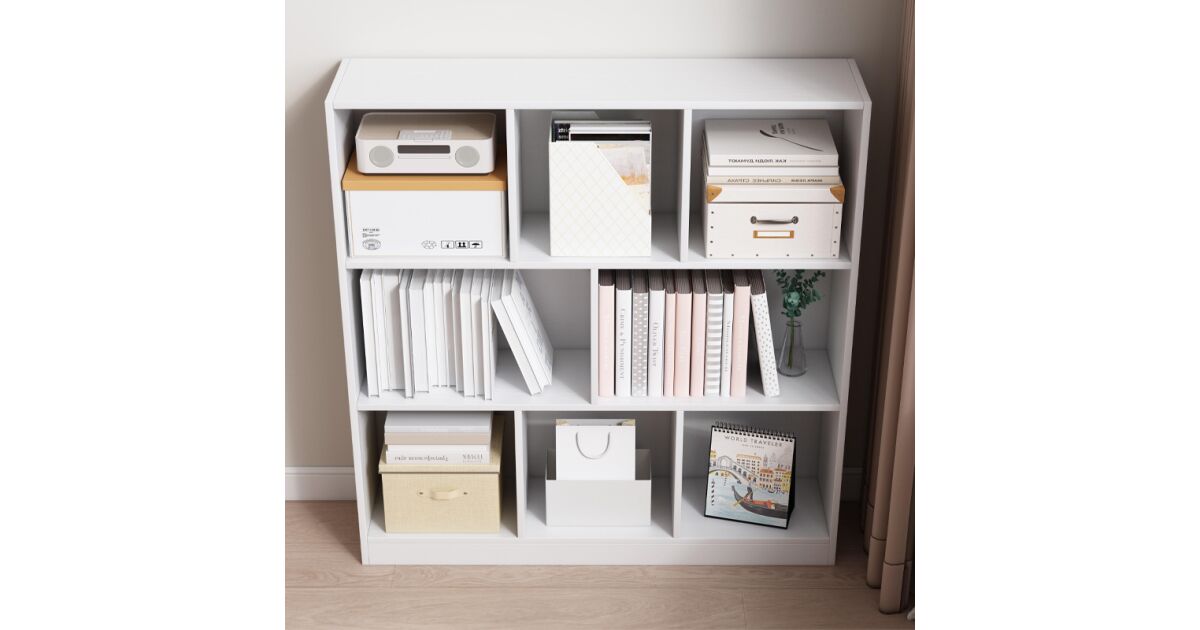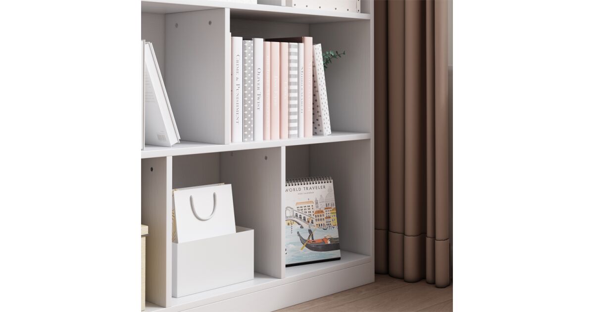 Raft deschis modern, alb, cu 8 polițe - Stil și funcționalitate într-unul singur! 📚