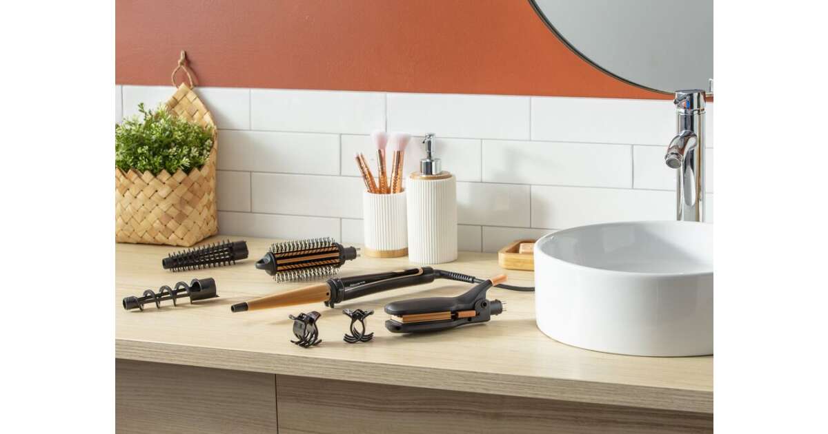 Acest set multifuncțional de coafat are tot ce îți trebuie pentru a-ți crea coafura perfectă. Setul include un ondulator, o placă de păr și mai multe accesorii, cu care îți poți schimba cu ușurință stilul. Combinația de culori Rose Gold și negru îi conferă un aspect elegant.