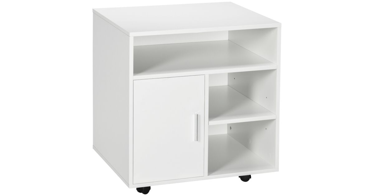 Homcom Dulap Imprimanta – Alb 60×50×65,5 cm cu Rafturi & Spatiu Depozitare Descriere