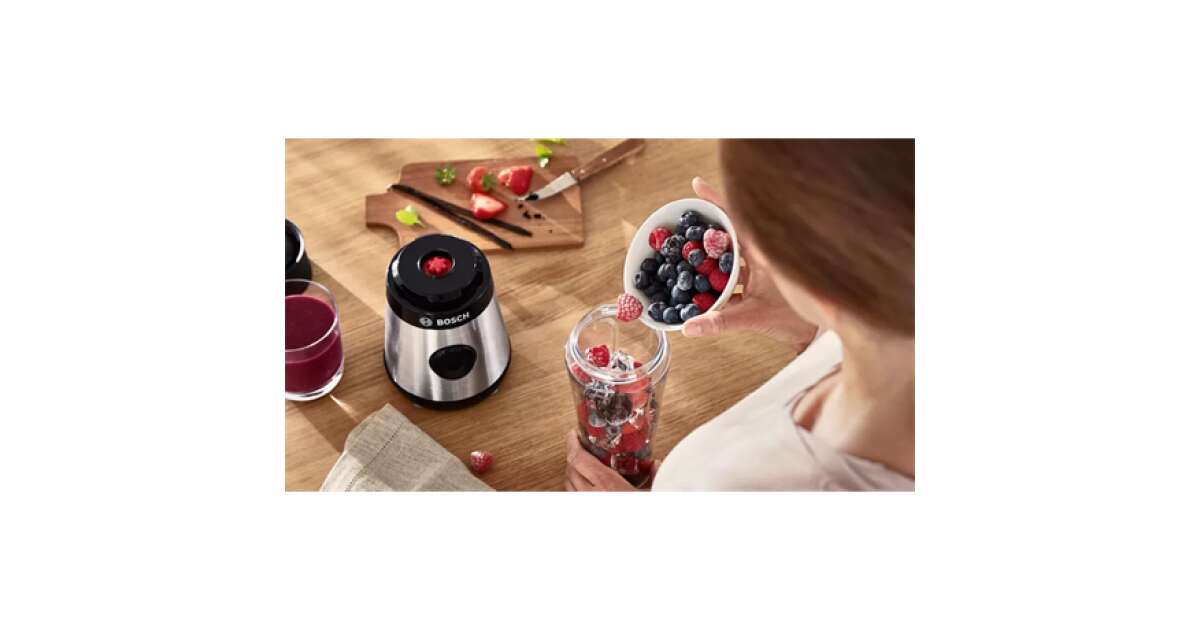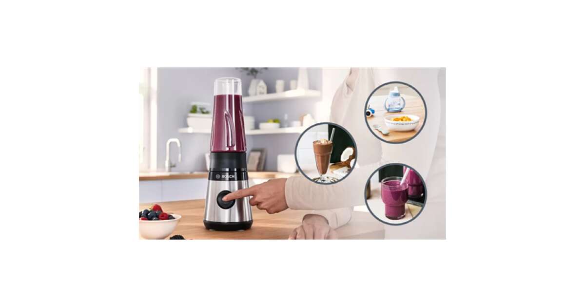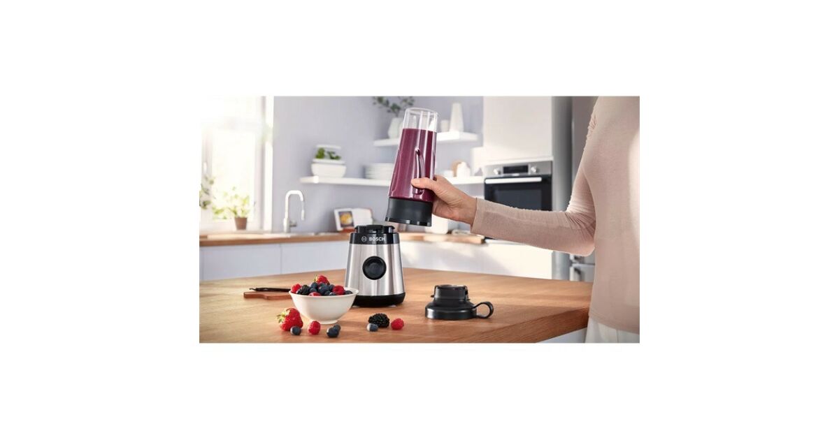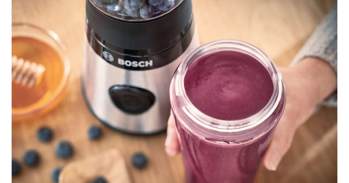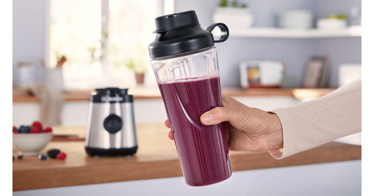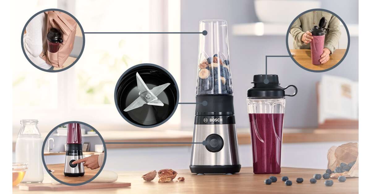 Bucură-te de smoothie-uri proaspete și sănătoase oriunde și oricând cu acest blender practic și ușor de utilizat Bosch!