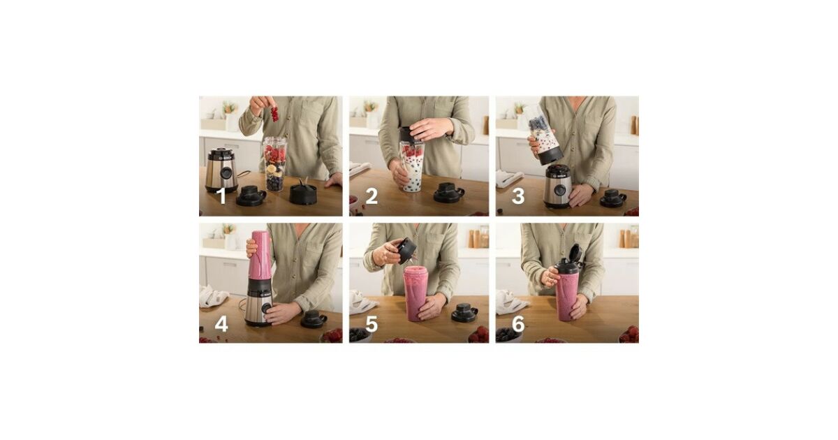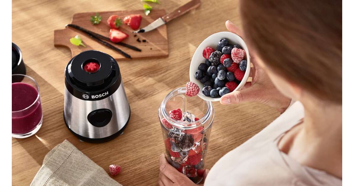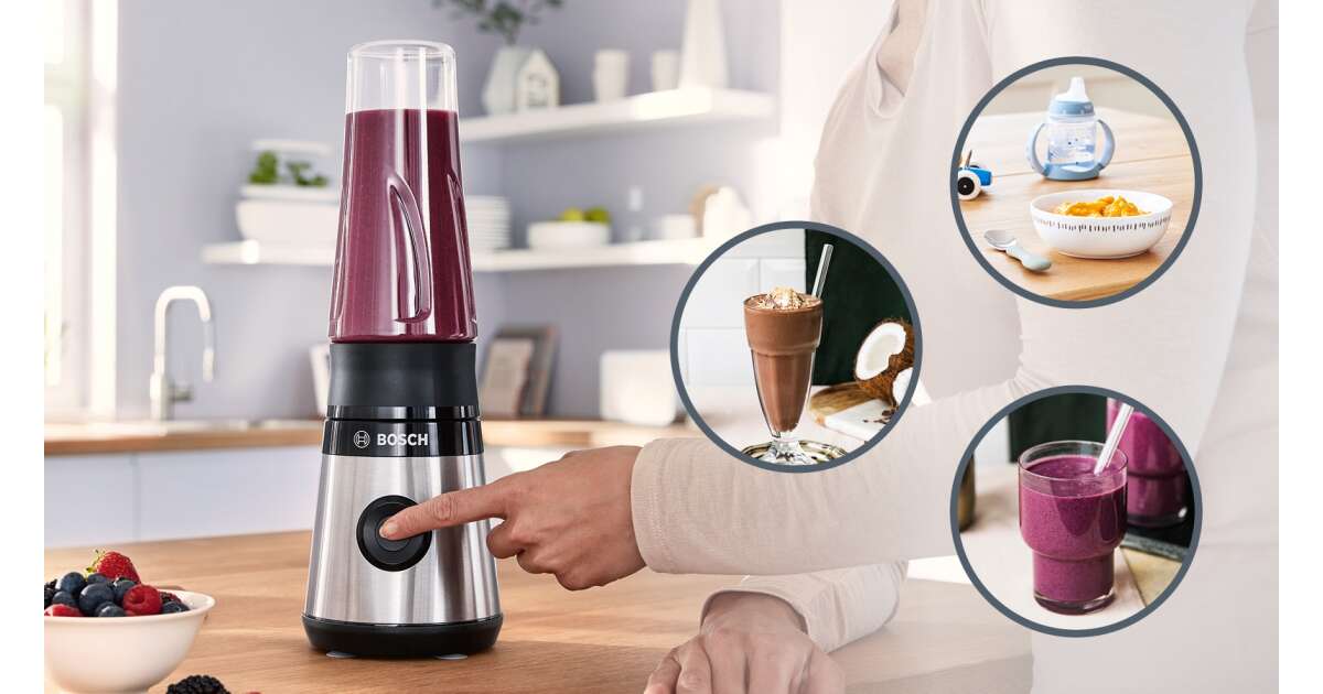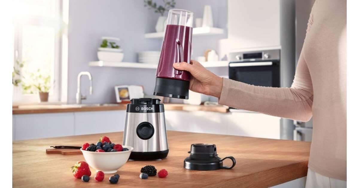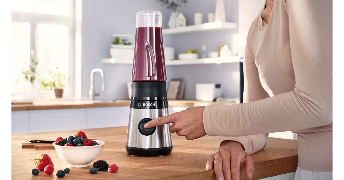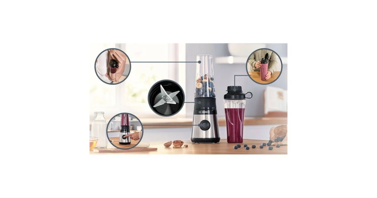 Bucură-te de smoothie-uri proaspete și sănătoase oriunde și oricând cu acest blender practic și ușor de utilizat Bosch!