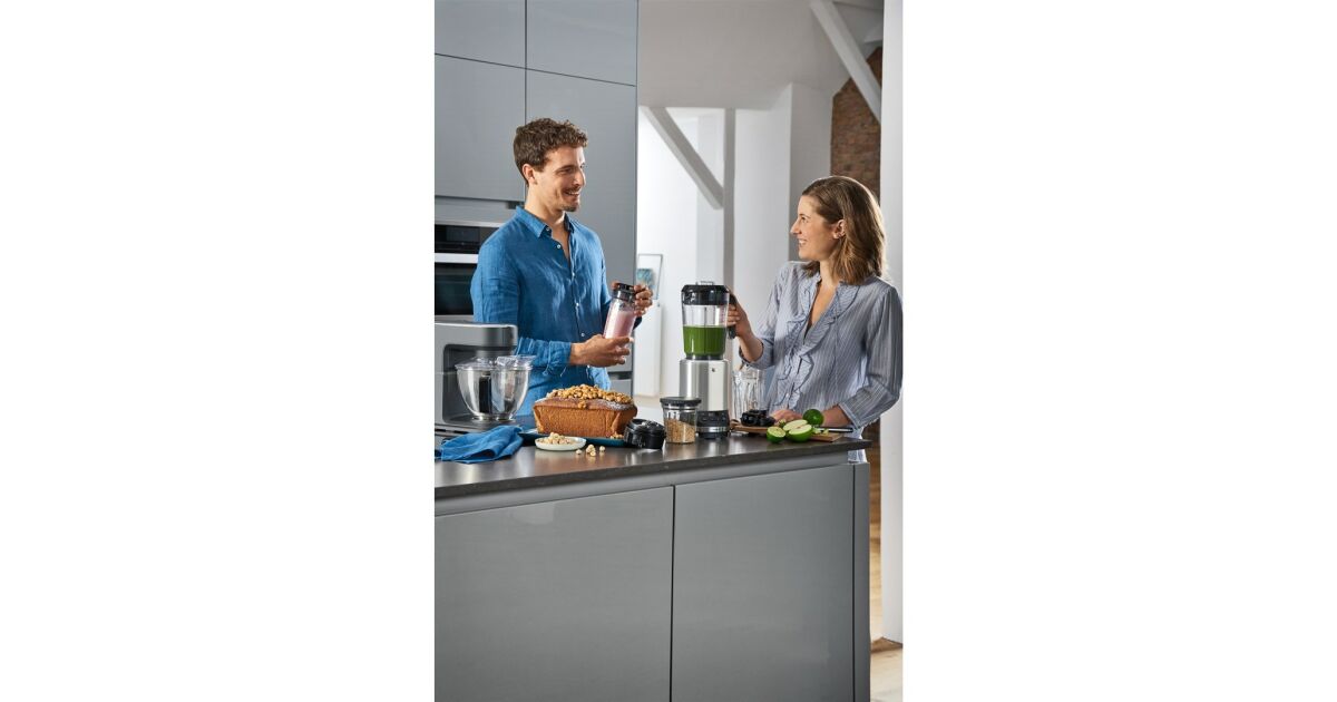 - Accesorii multiple: 4 vase blender (300 ml, 500 ml, 700 ml si 1200 ml) cu capace, ideale pentru portii individuale sau pentru intreaga familie.
