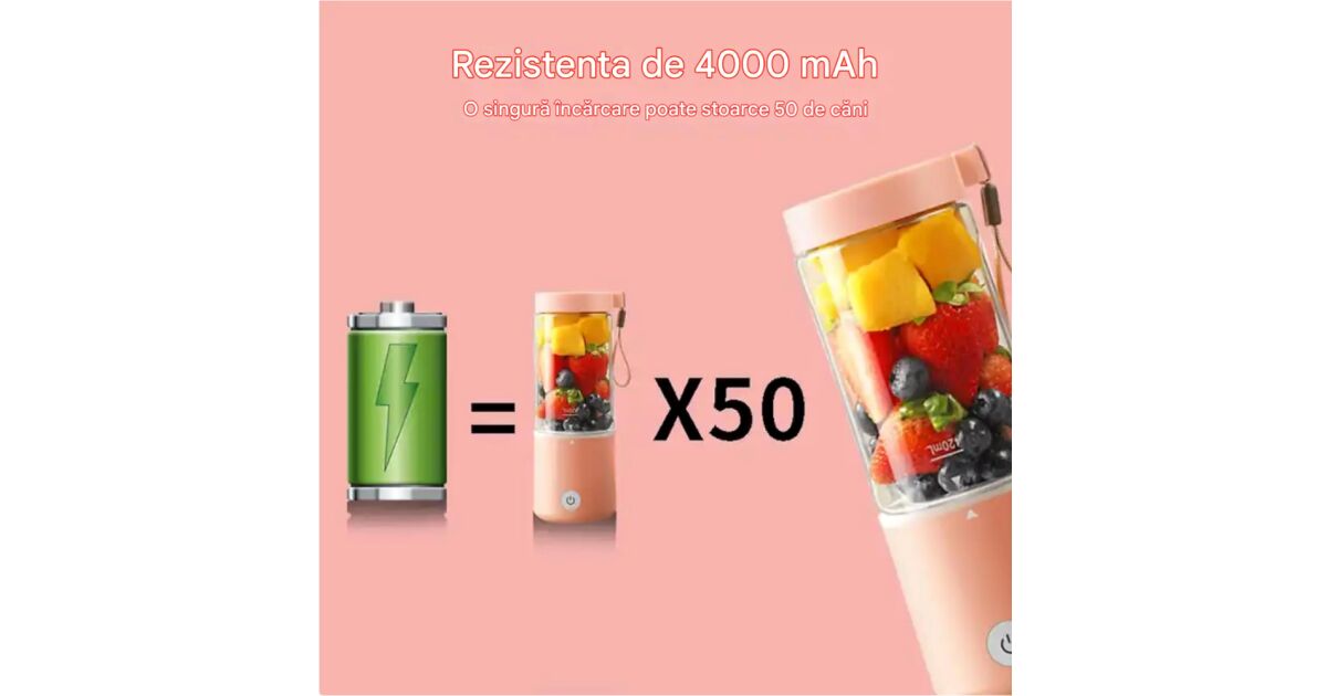 - 🔋 Durată lungă de viață a bateriei: Cu bateria de 4000mAh, poți prepara până la 25 de smoothie-uri cu o singură încărcare.