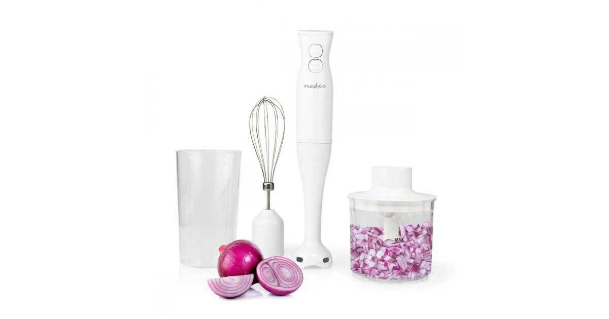 Acest set compact de blender 4 în 1 conține toate accesoriile necesare pentru mixare, tocare și spumare rapidă și ușoară. Prepară cu ușurință creme, smoothie-uri, sosuri și multe altele! 🥣