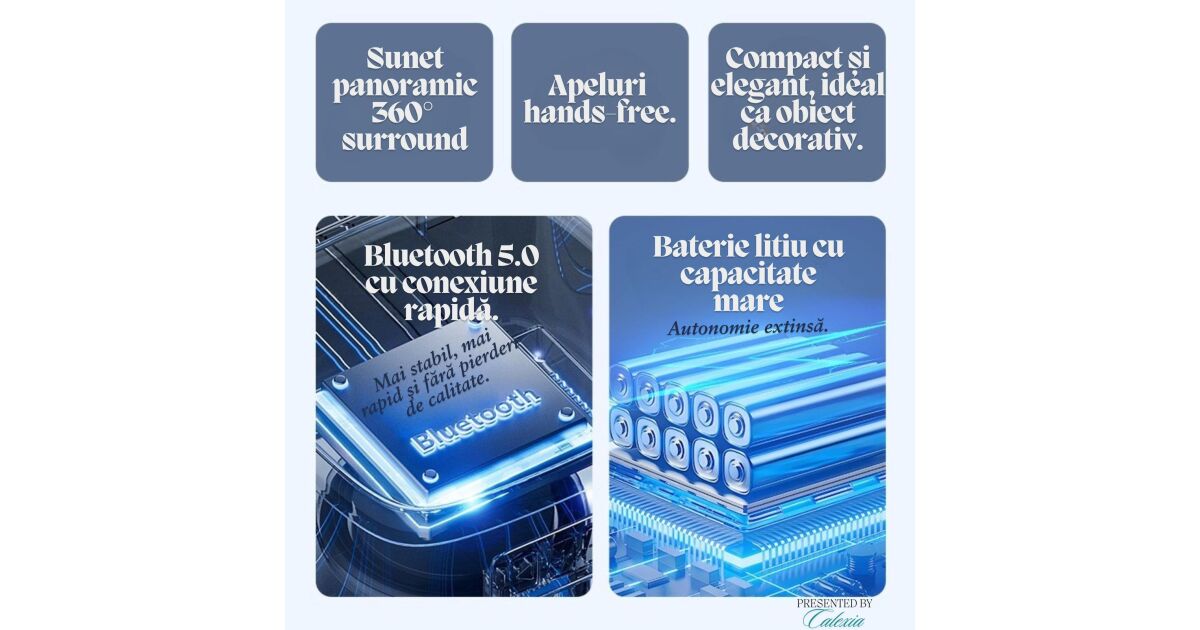 - Calitate sunet Hi-Fi: Bucură-te de un sunet clar, cu bas bogat, datorită sunetului surround panoramic la 360°. 🔊