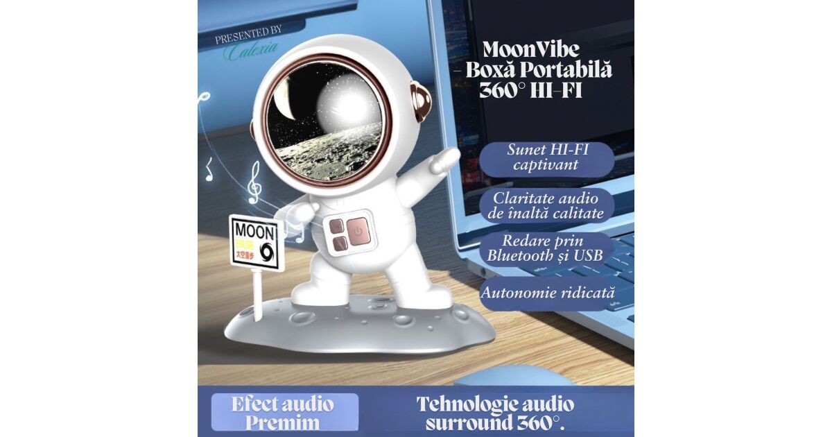 Boxa Bluetooth MoonVibe Astronaut: Sunet Hi-Fi la 360° 🚀
