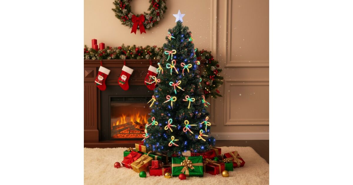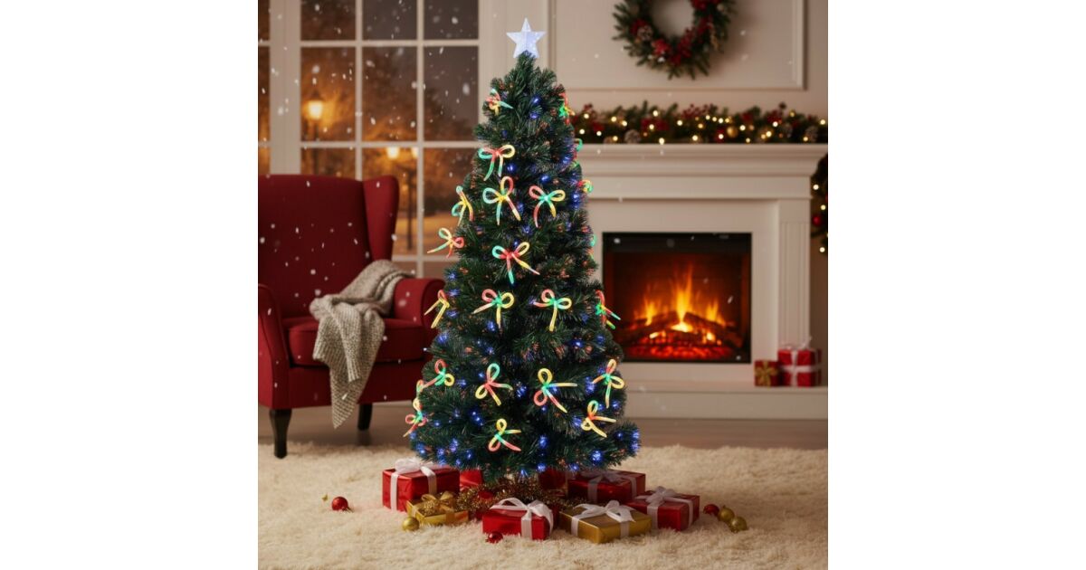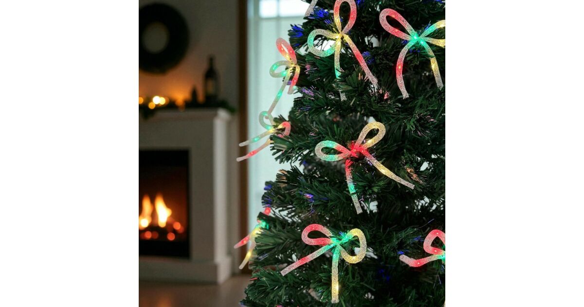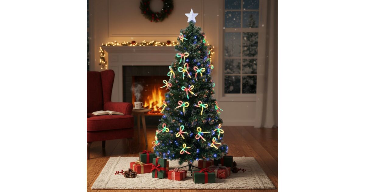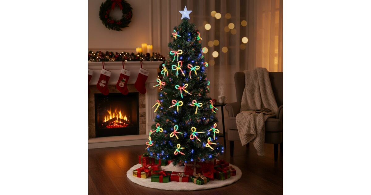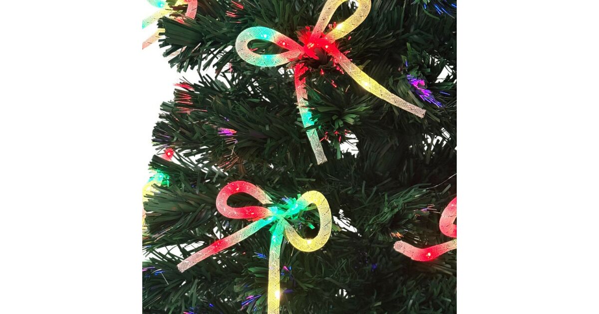 Brad artificial cu fibră optică multicoloră, fundițe și stea în vârf - 180 cm 🎄