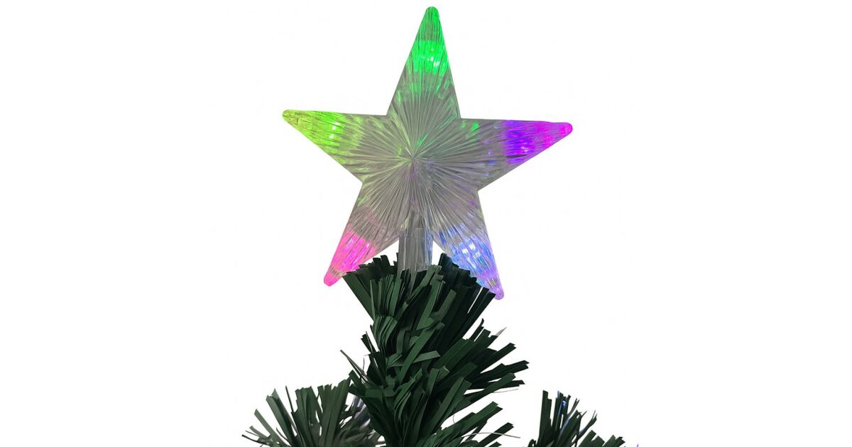 Brad artificial Craciun, fibra optica multicolor, 36 funde, stea in varf, inaltime 180 cm Descriere