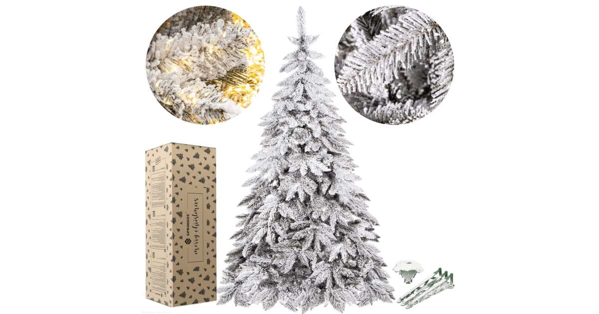 Bucură-te de sărbătorile de Crăciun în atmosfera primitoare a bradului artificial caucazian cu zăpadă de la Springos! ✨