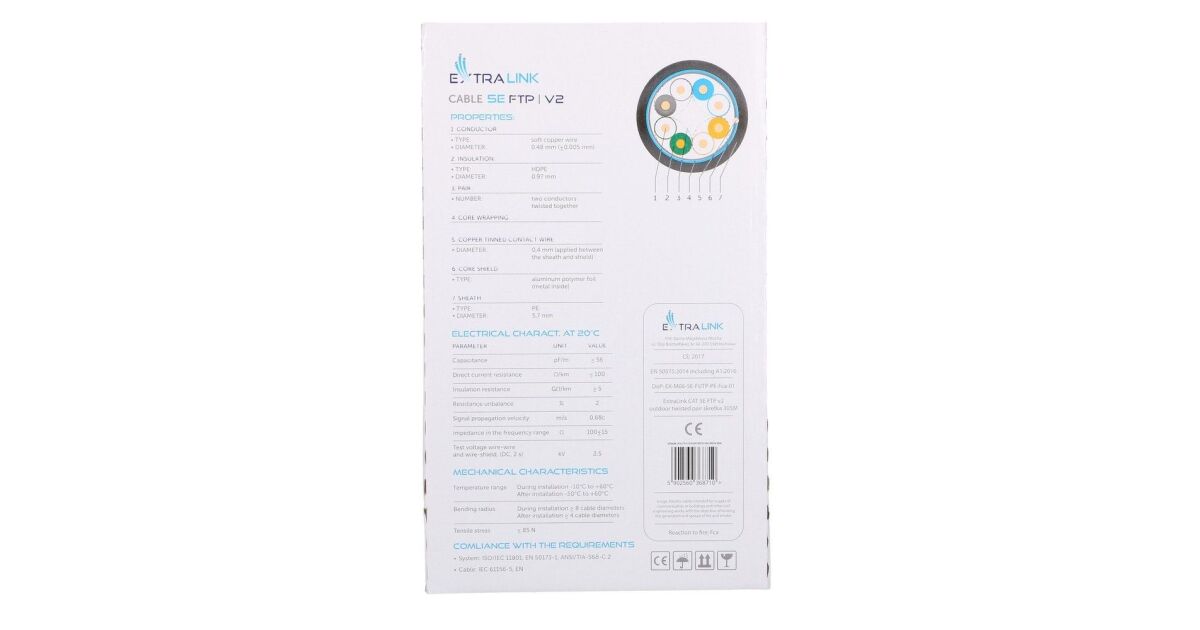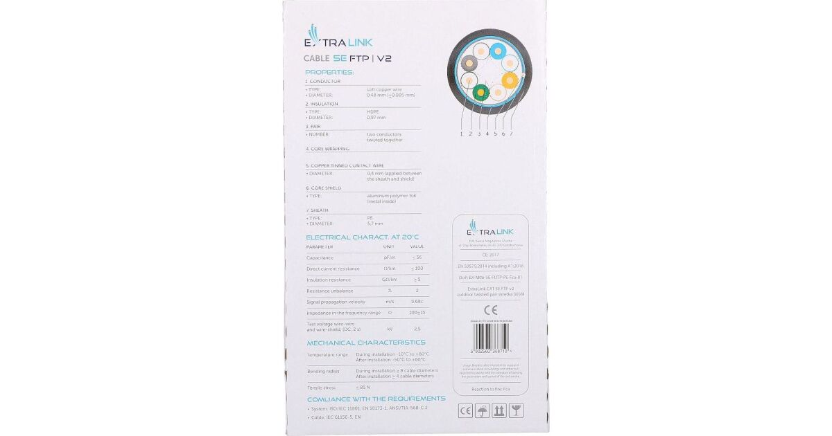 Extralink CAT5E FTP (F/UTP) V2 Cablu torsadat exterior 305M - Cablu de rețea Negru F/UTP (FTP) Descriere