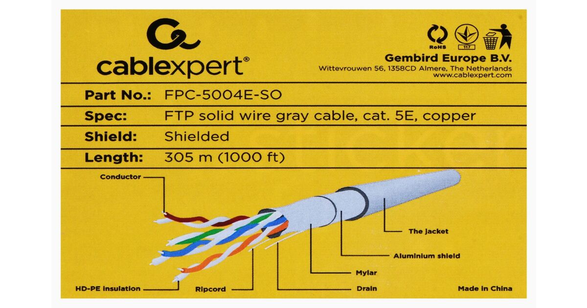 ROLA CABLU FTP GEMBIRD, Cat5e. 305m, Cupru, Solid, AWG24, FPC-5004E-SO (FPC-5004E-SO) (FPC-5004E-SO) Descriere