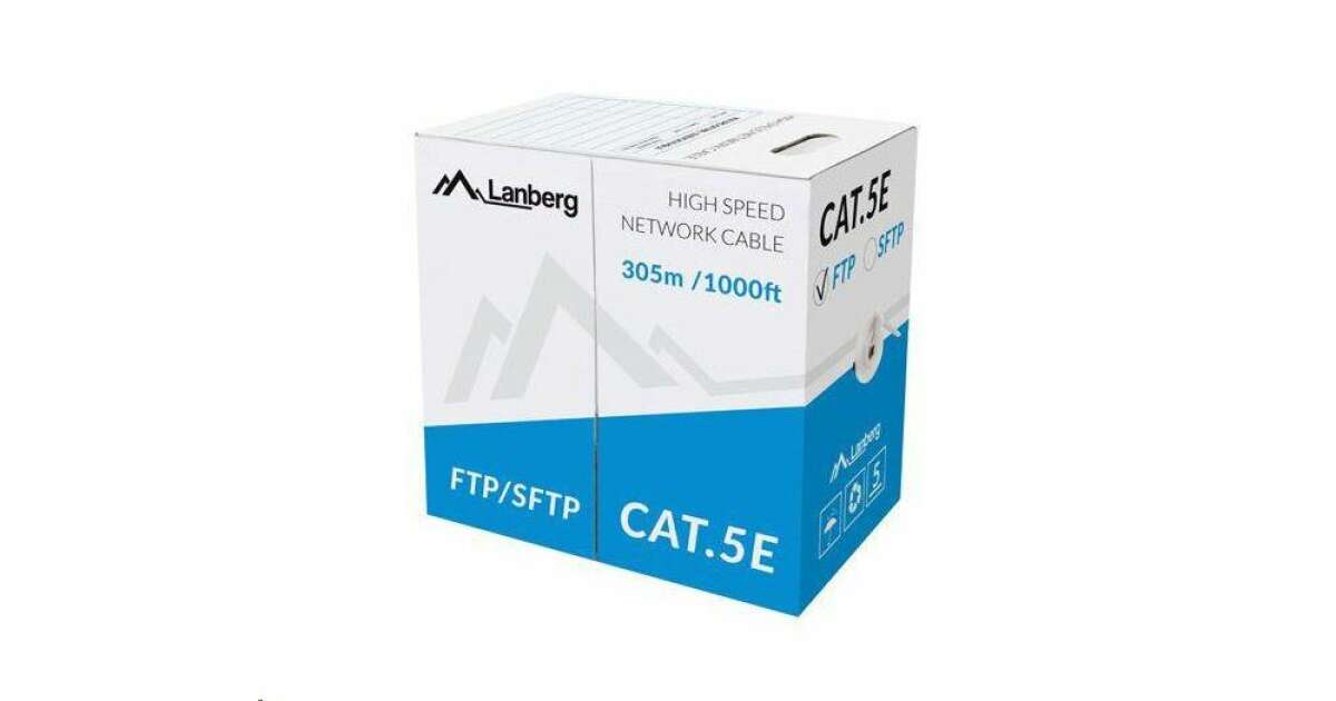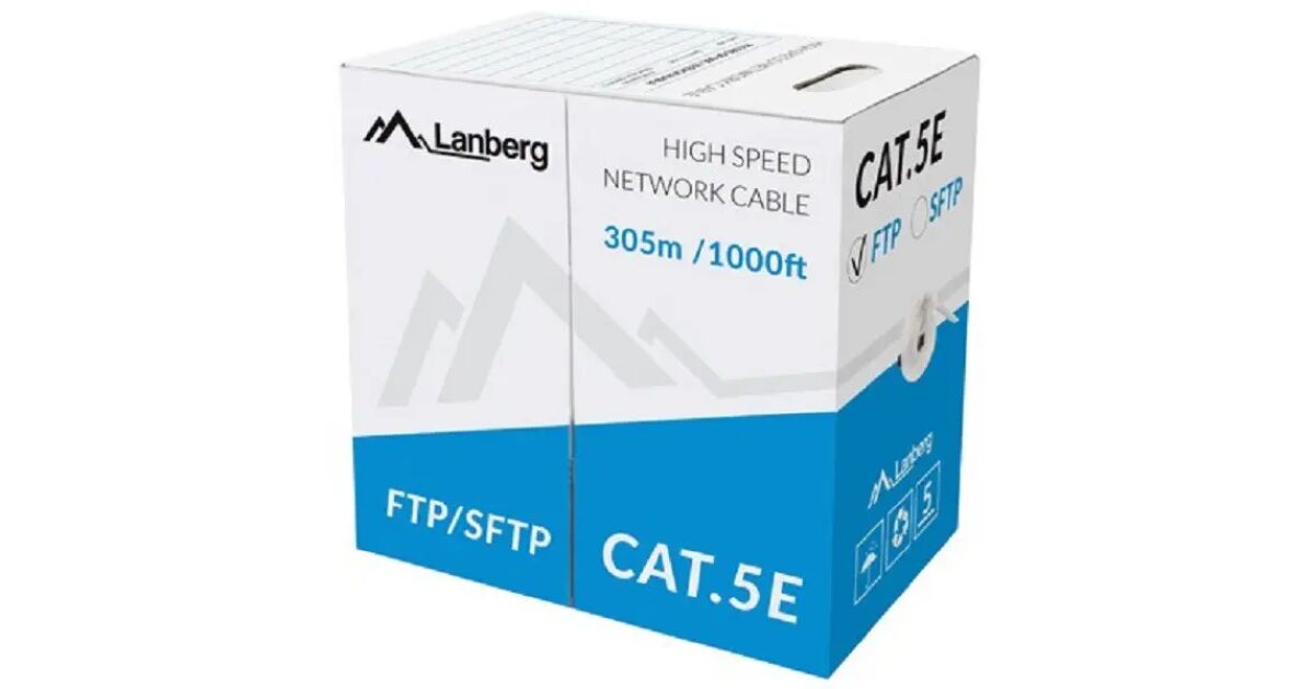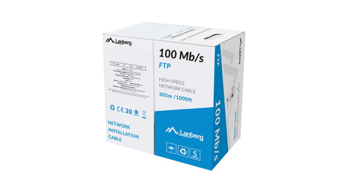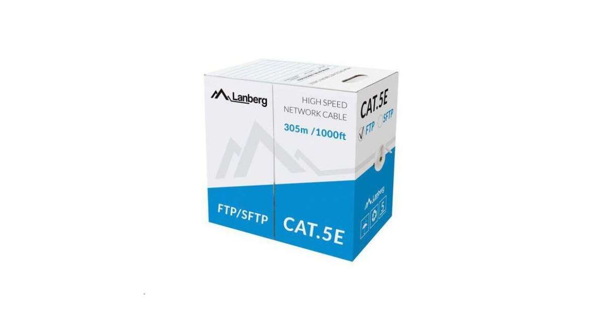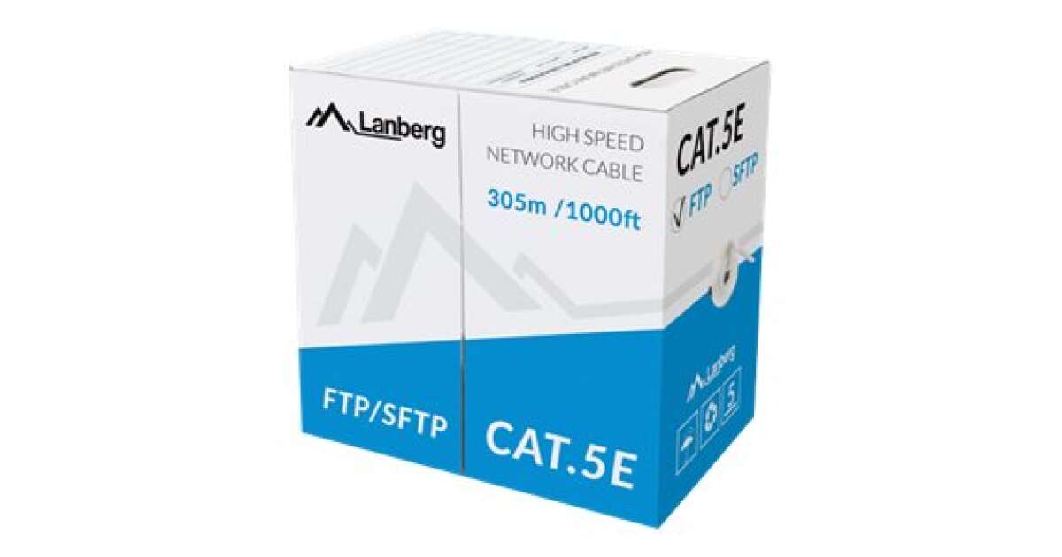 -Rola cablu ecranat FTP, Lanberg 41406, cat.5e, lungime 305 metri, AWG 26, 100 MHz, de legatura retea, ethernet, gri (LCF5-10CC-0305-S) Descriere