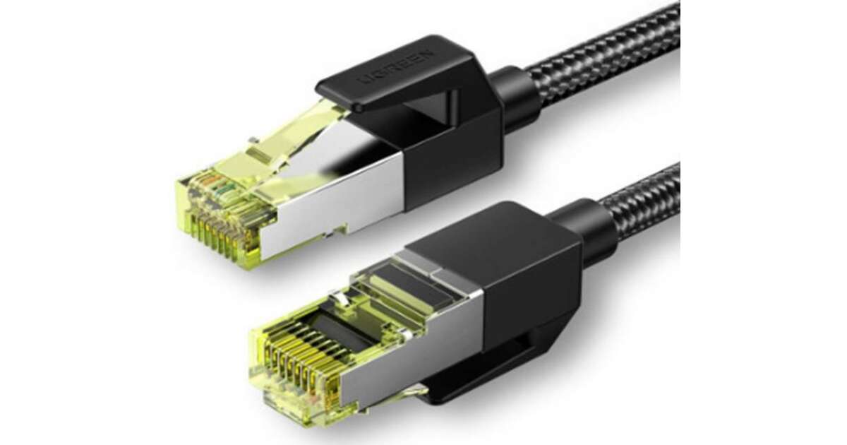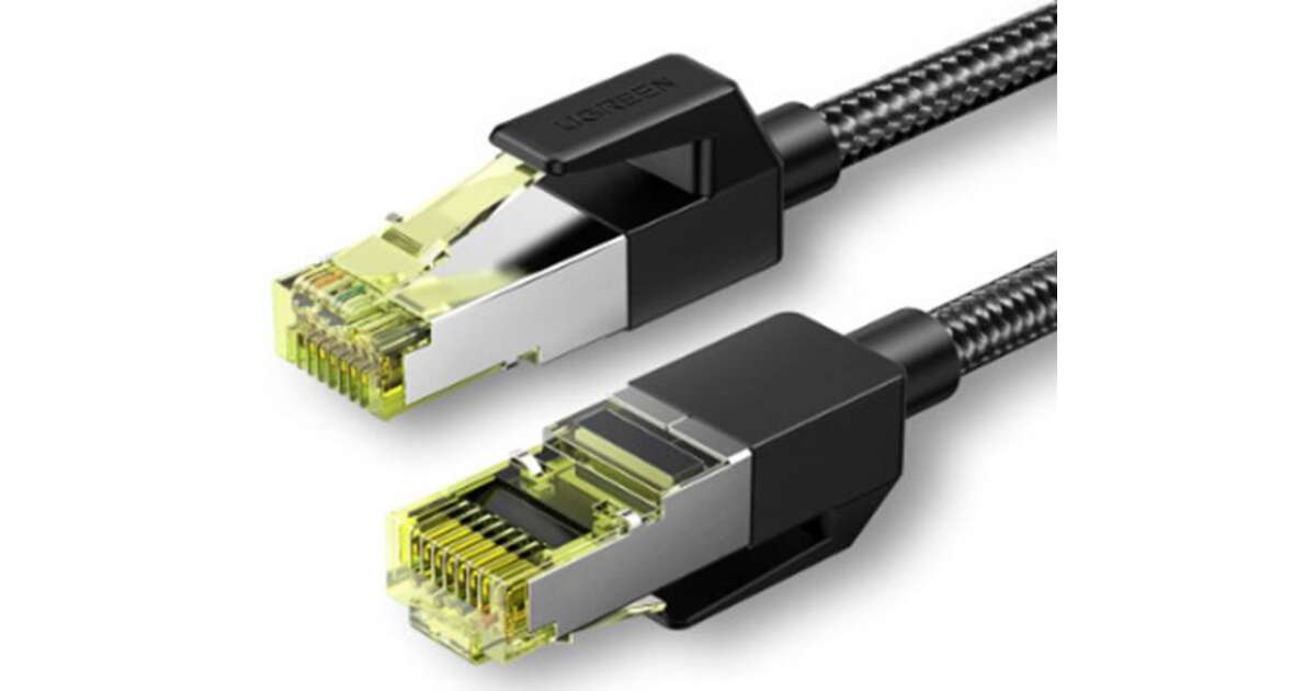 Cablu de retea, UGREEN, NW150, F/FTP Ethernet RJ45, Cat 7, Lungime 0.5 m, Viteza 10 GB/s, Conectori placati cu aur, Negru, Tip snur impletit (UG80420) (80420) Descriere