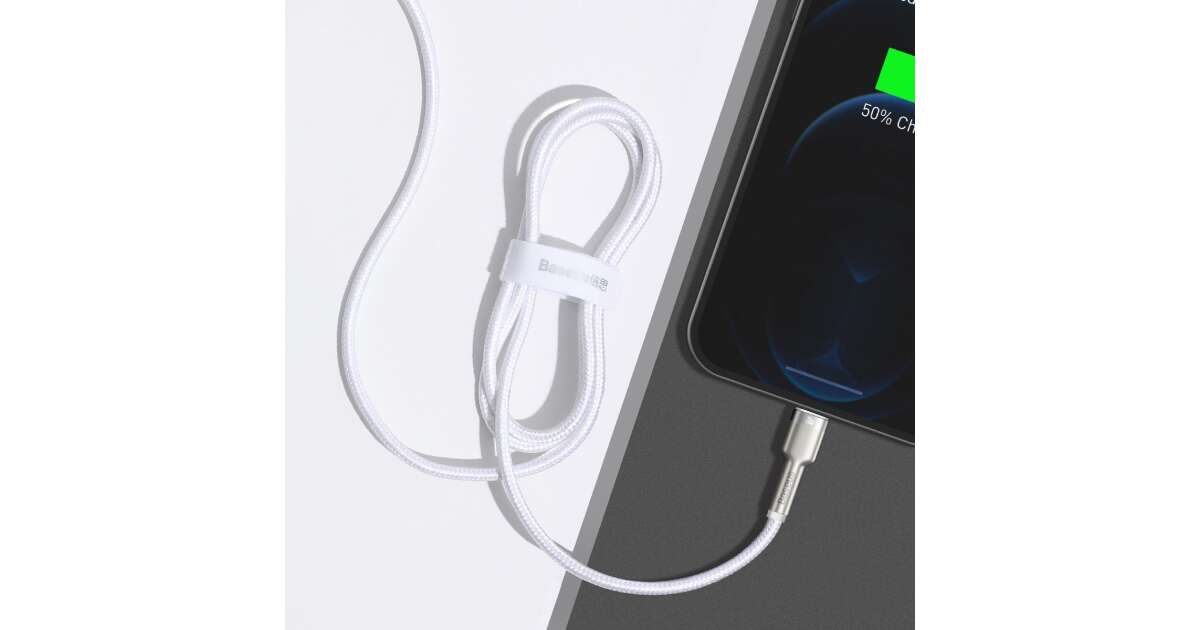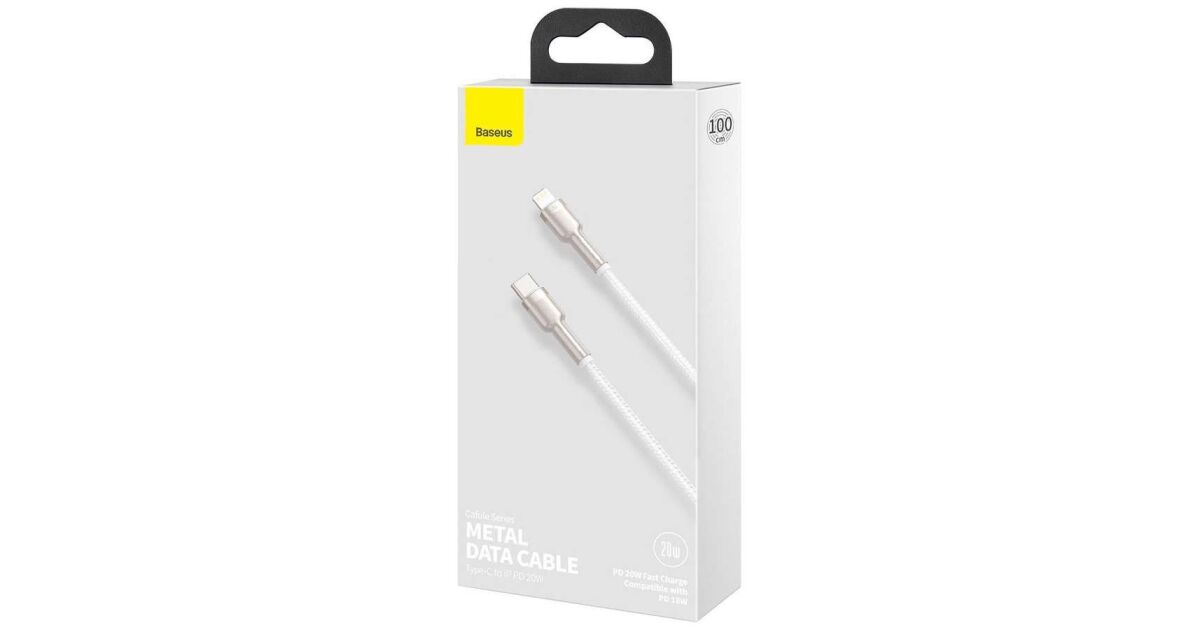 Cablu de încărcare de la USB-C la Lightning Baseus Cafule, PD, 20W - alb, 1m (CATLJK-A02) Descriere