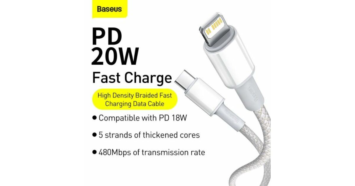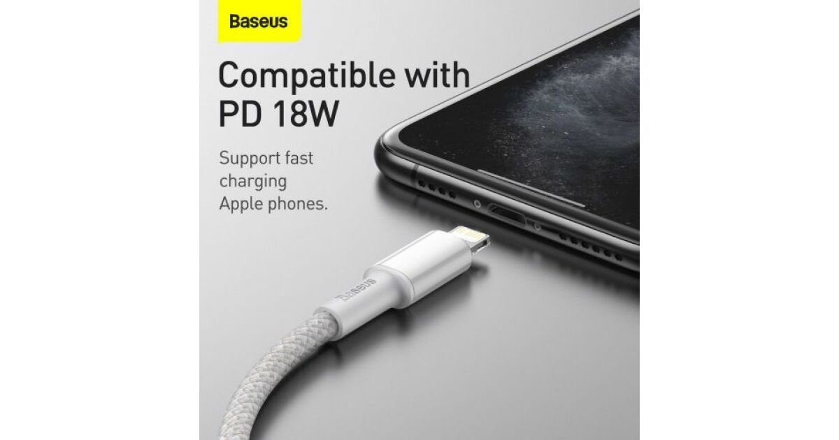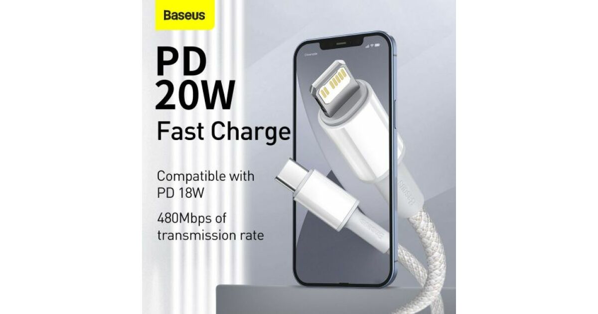 Cablu Date si Incarcare Baseus USB Type-C la tip Lightning, 2 m, 20W,CATLGD-A02, Alb (CATLGD-A02) Descriere