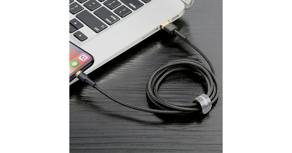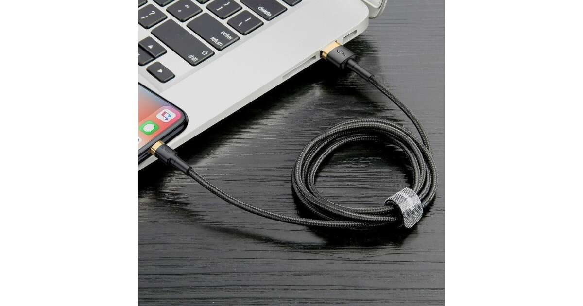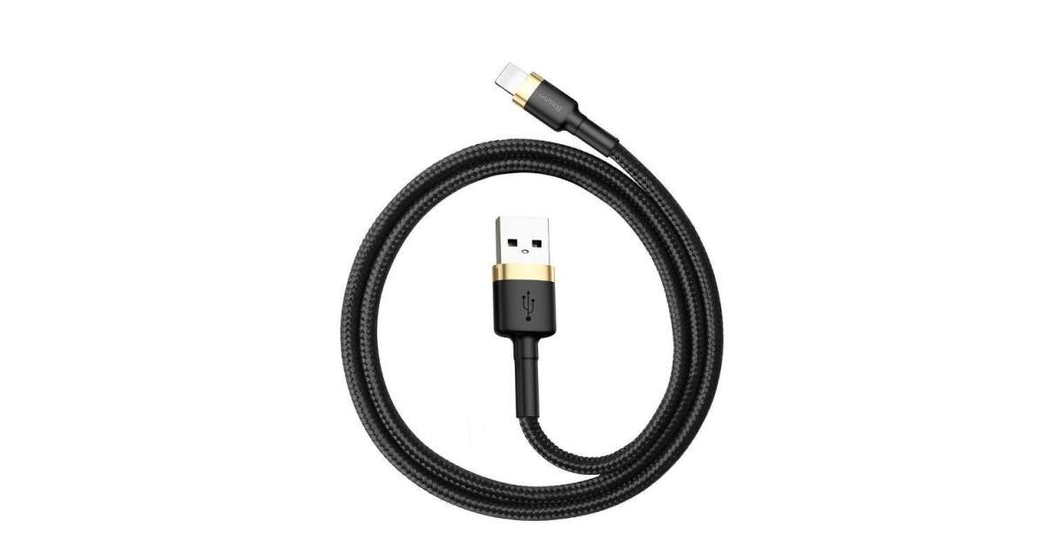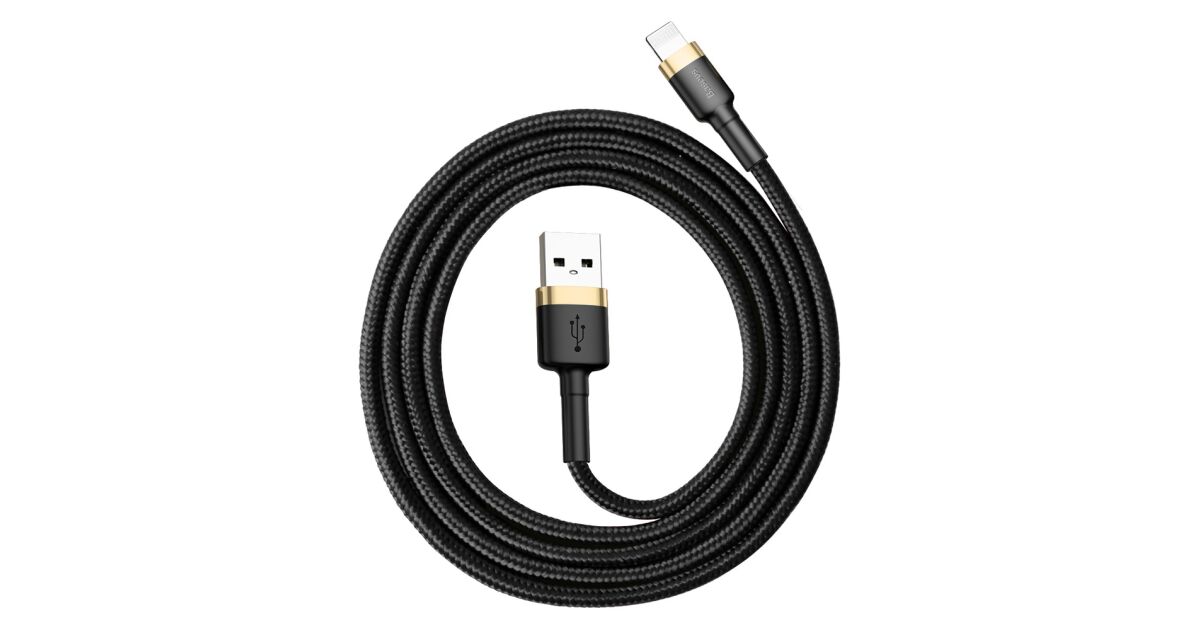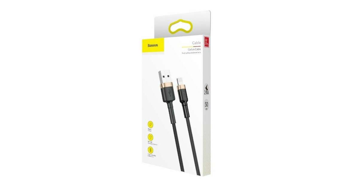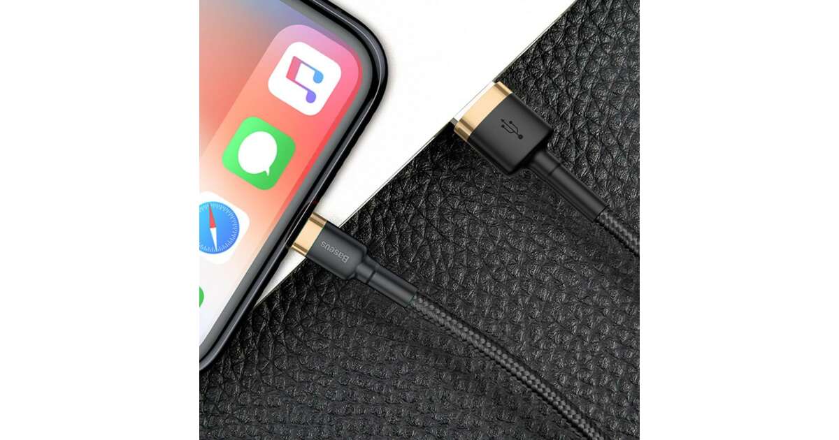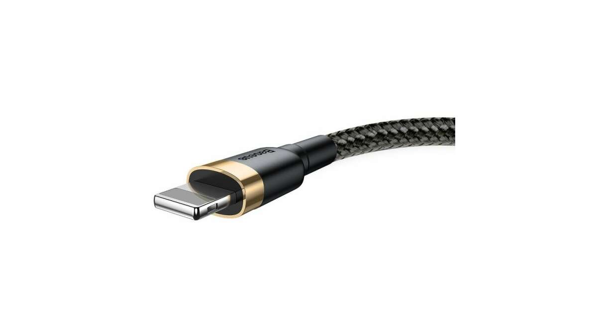 Cablu Baseus Cafule, impletit USB la Lightning, QC3.0, 2.4A, 1m, negru, auriu (CALKLF-BV1) Descriere