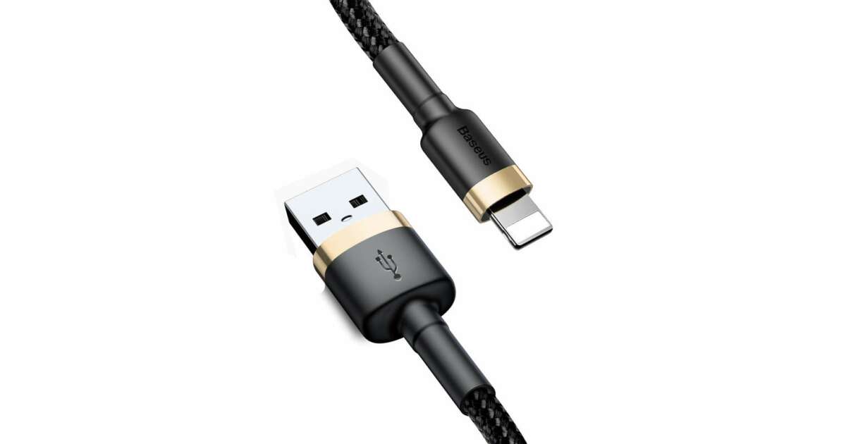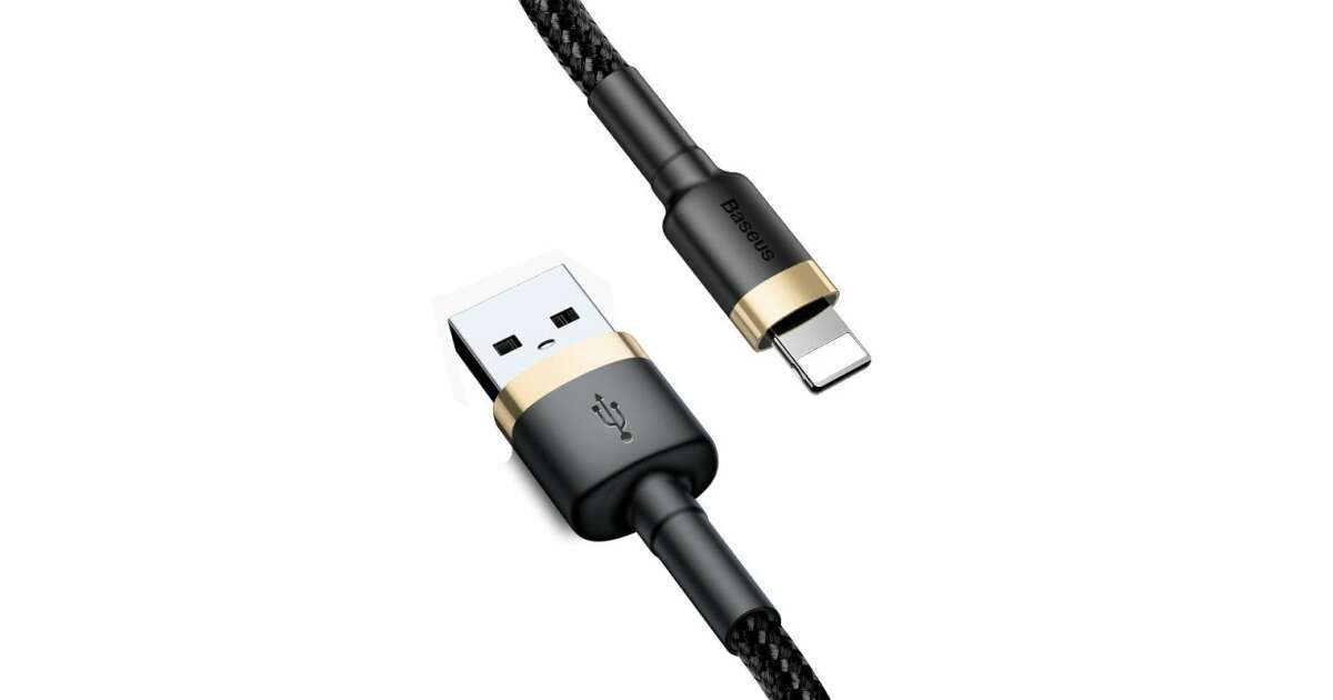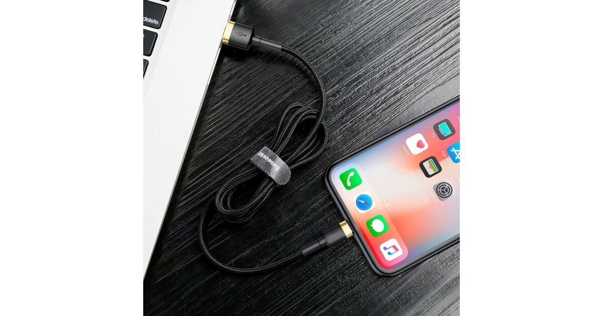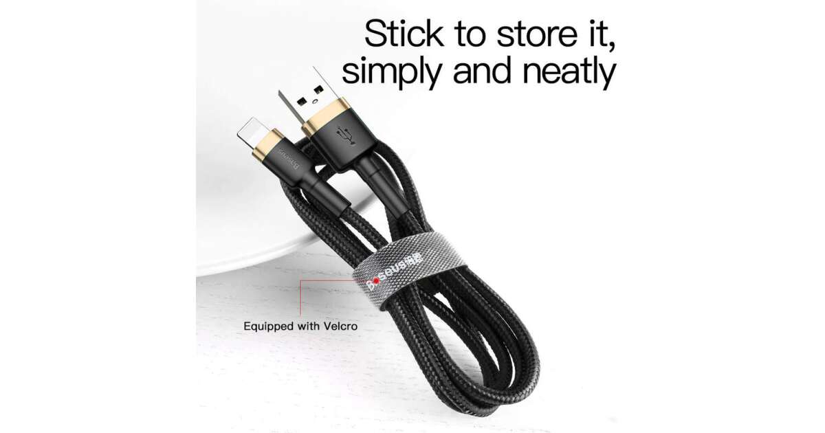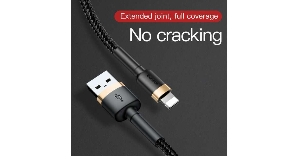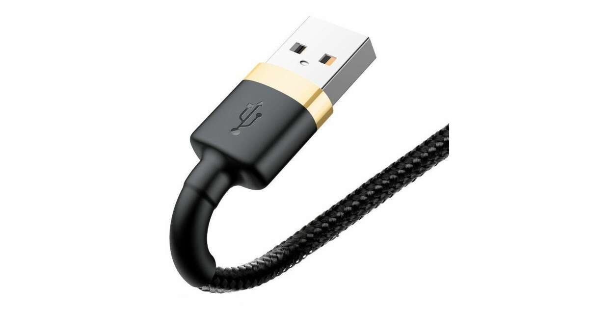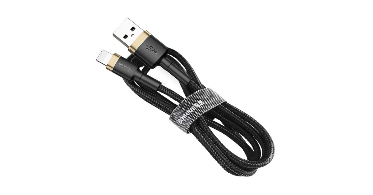 Cablu Baseus Cafule, impletit USB la Lightning, QC3.0, 2.4A, 1m, negru, auriu (CALKLF-BV1) Descriere