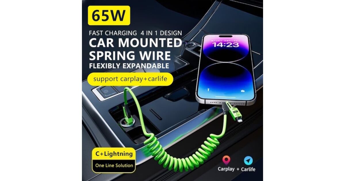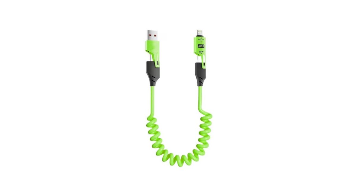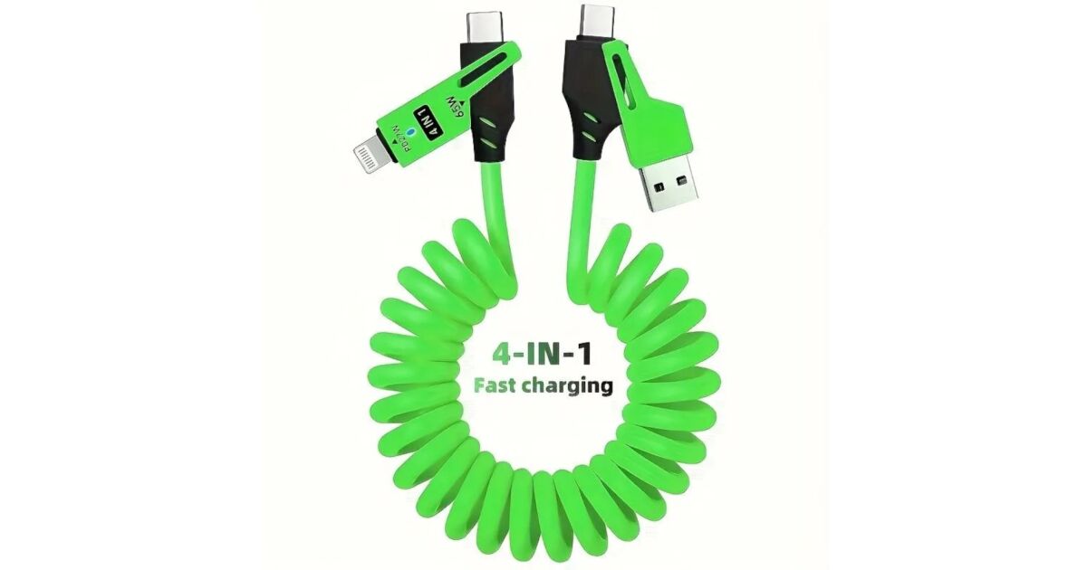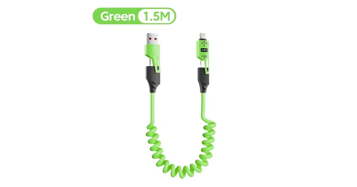 Cablu de Date 4 in 1 cu Incarcare Rapida - USB, Lightning si Type -C - Flexibil si Compact, 1,5m, Verde ABYZ™ Descriere