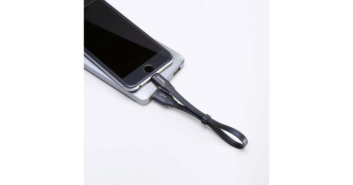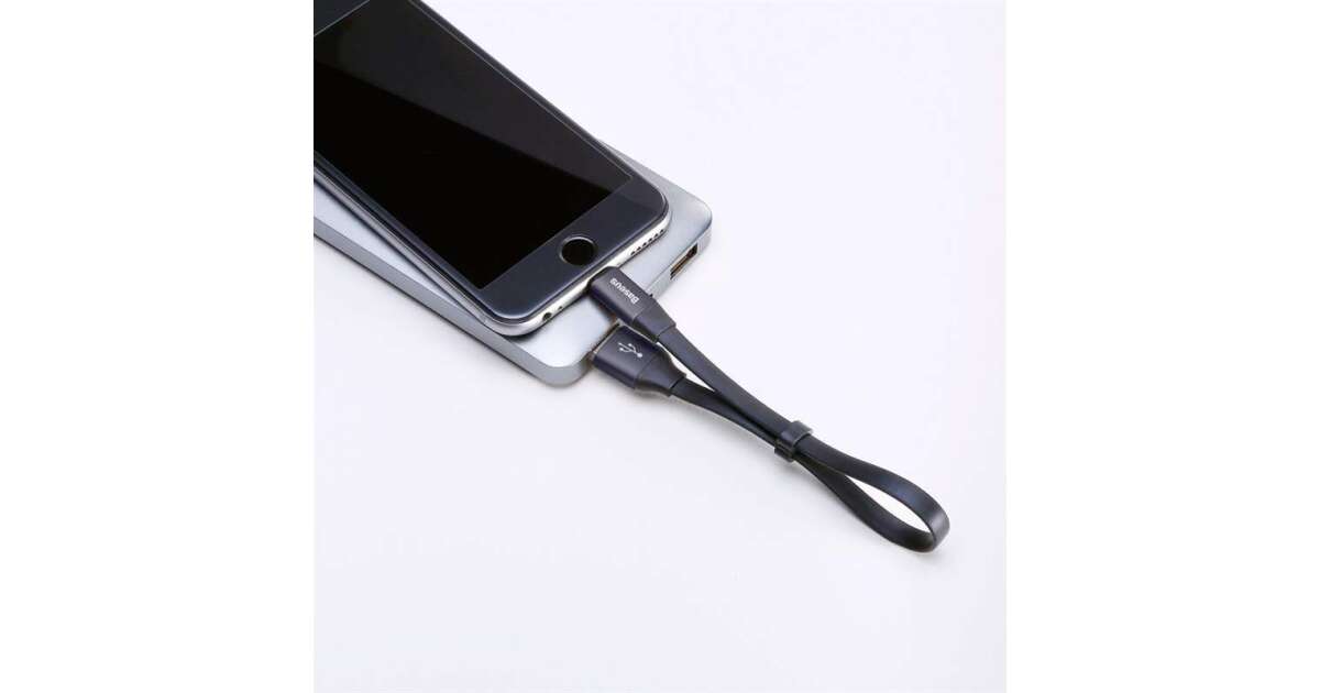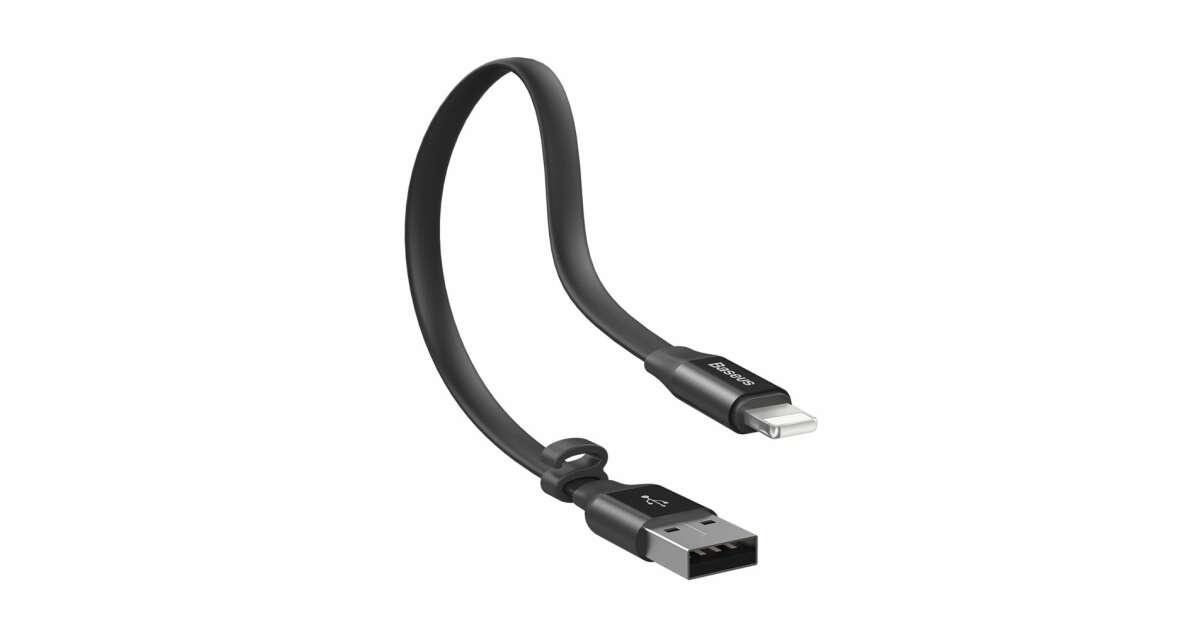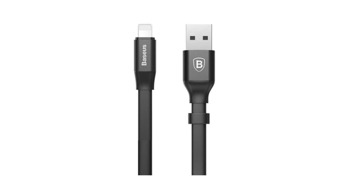 Cablu de date/incarcare Baseus, Nimble Flat Portable, tip lightning 23cm 2 A, Negru Descriere