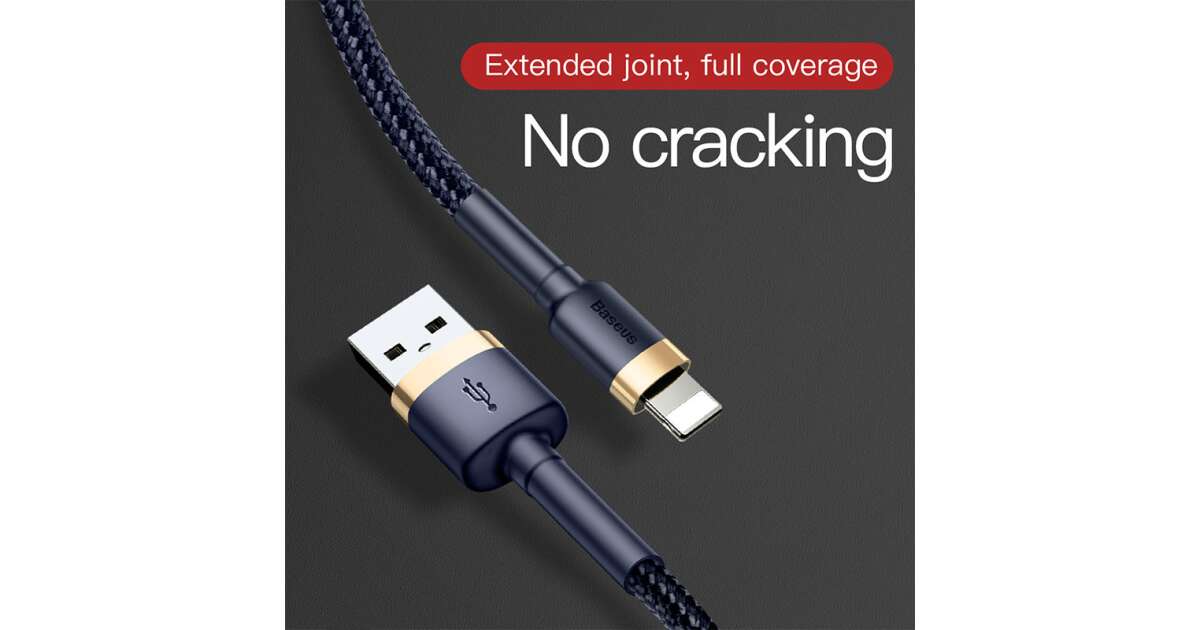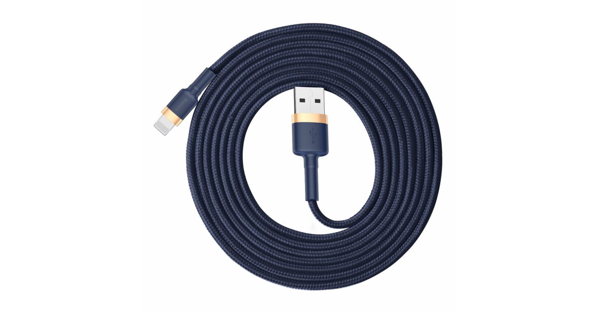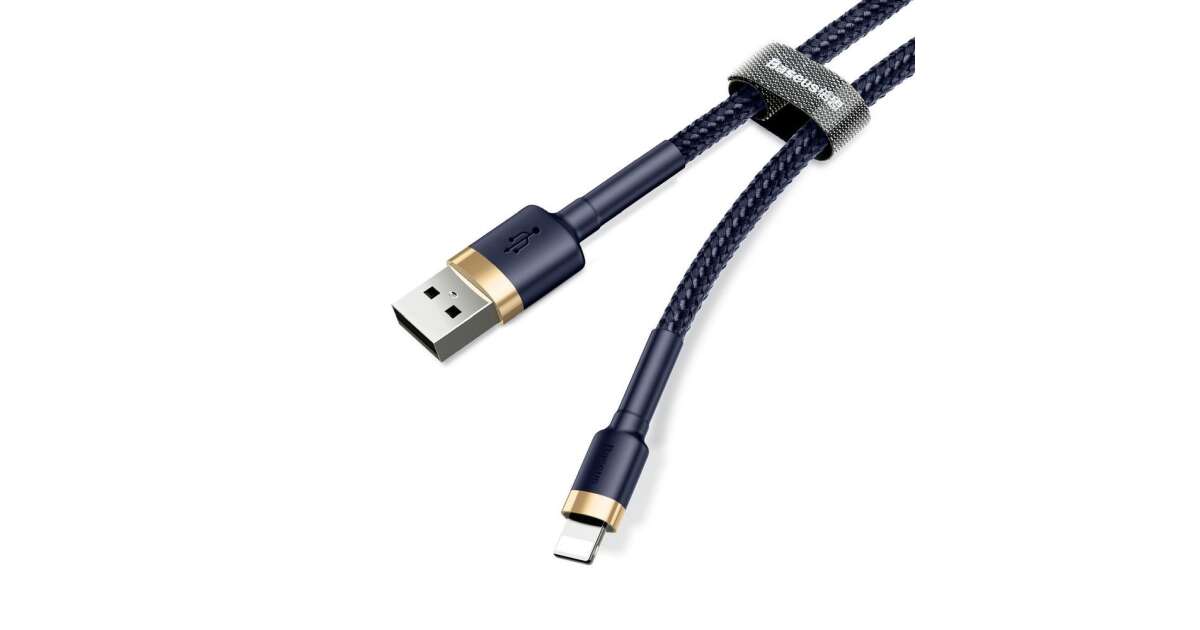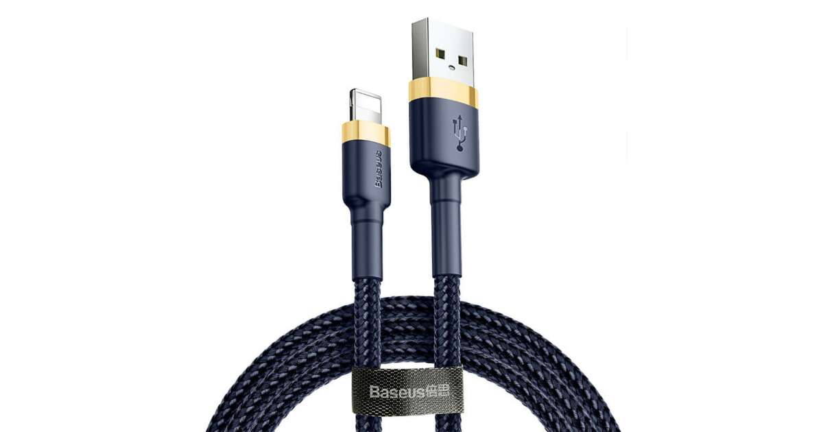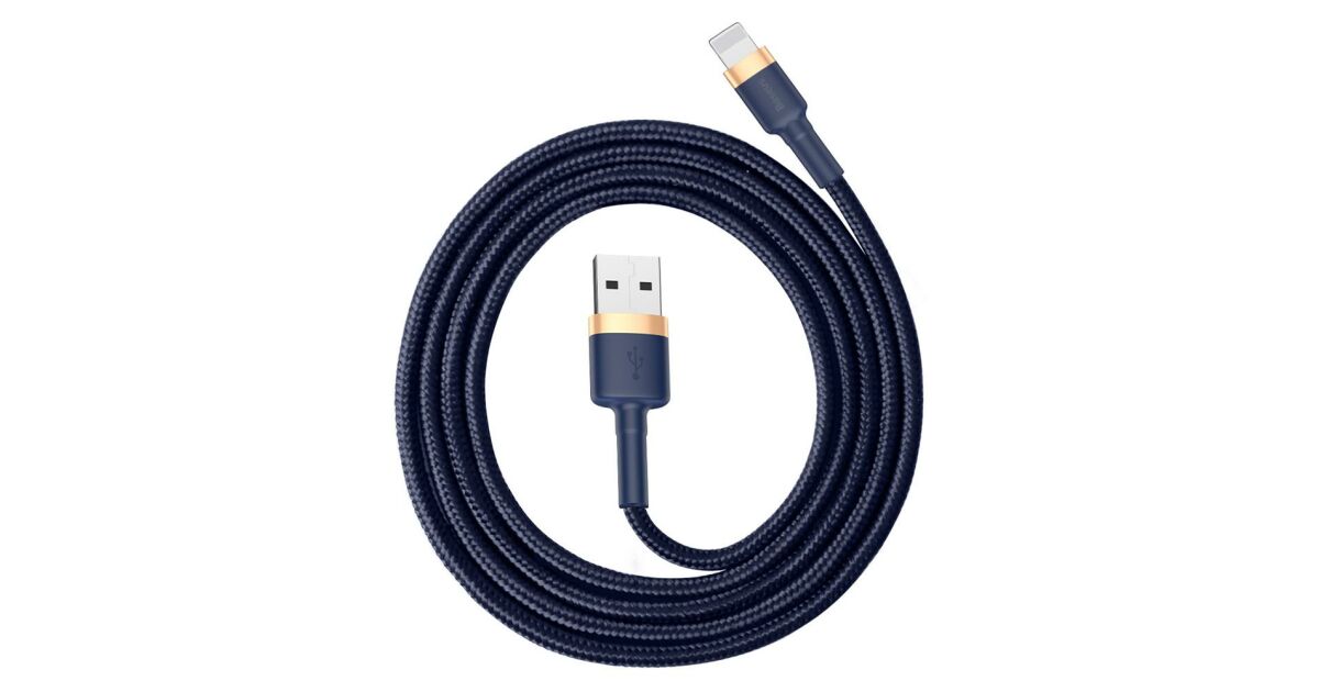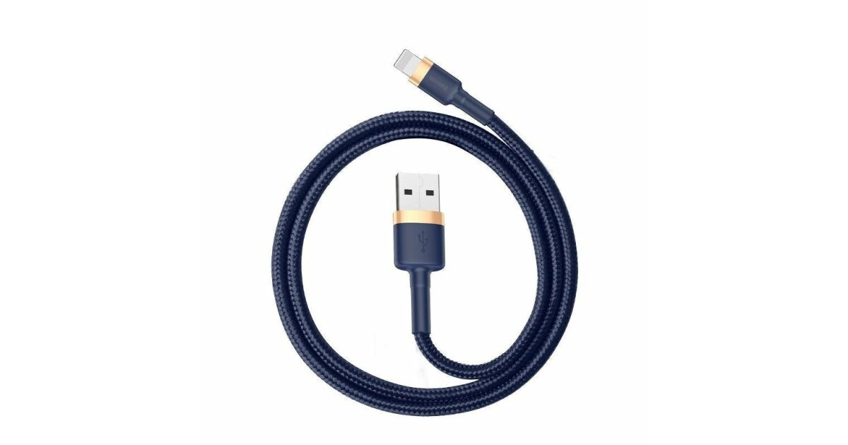 Cablu Baseus Cafule, USB la Lightning, 2.4A, 1m, auriu, albastru (CALKLF-BV3) Descriere