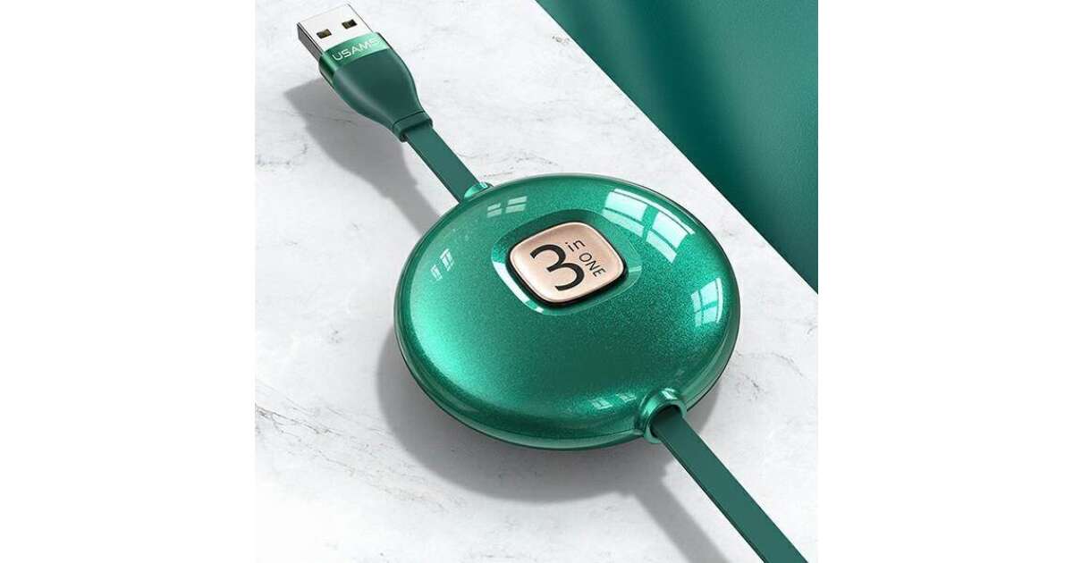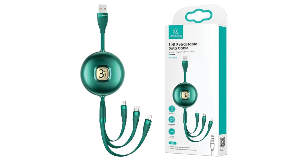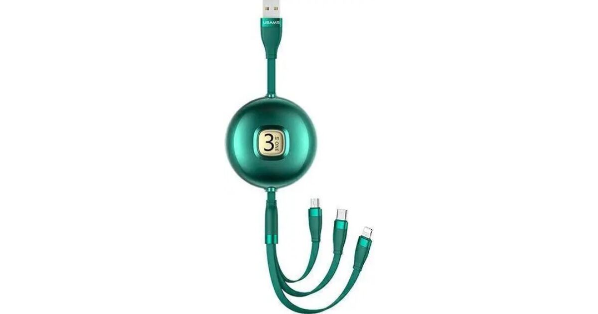 Cablu Retractabil 3 în 1 USAMS - 1m - Verde: Soluția perfectă pentru toate dispozitivele tale! 📱🔌