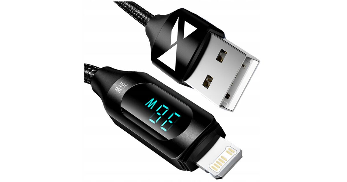 Cablu USB-A - Lightning Wozinsky WUALC2 cu Display LED 2, 4A 2m - Negru Descriere