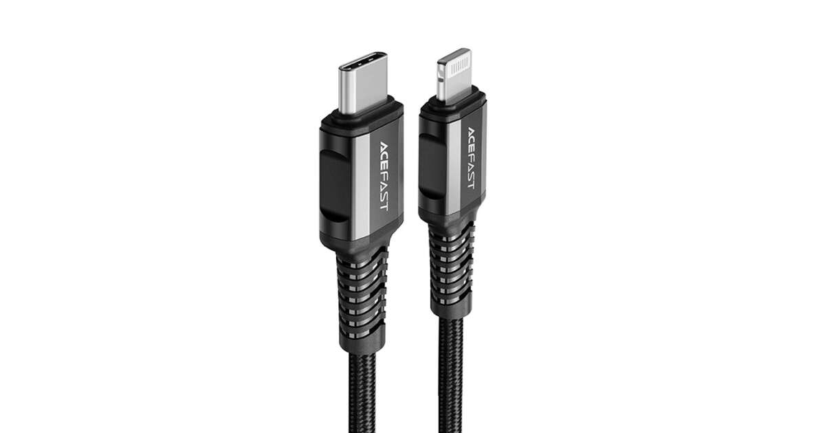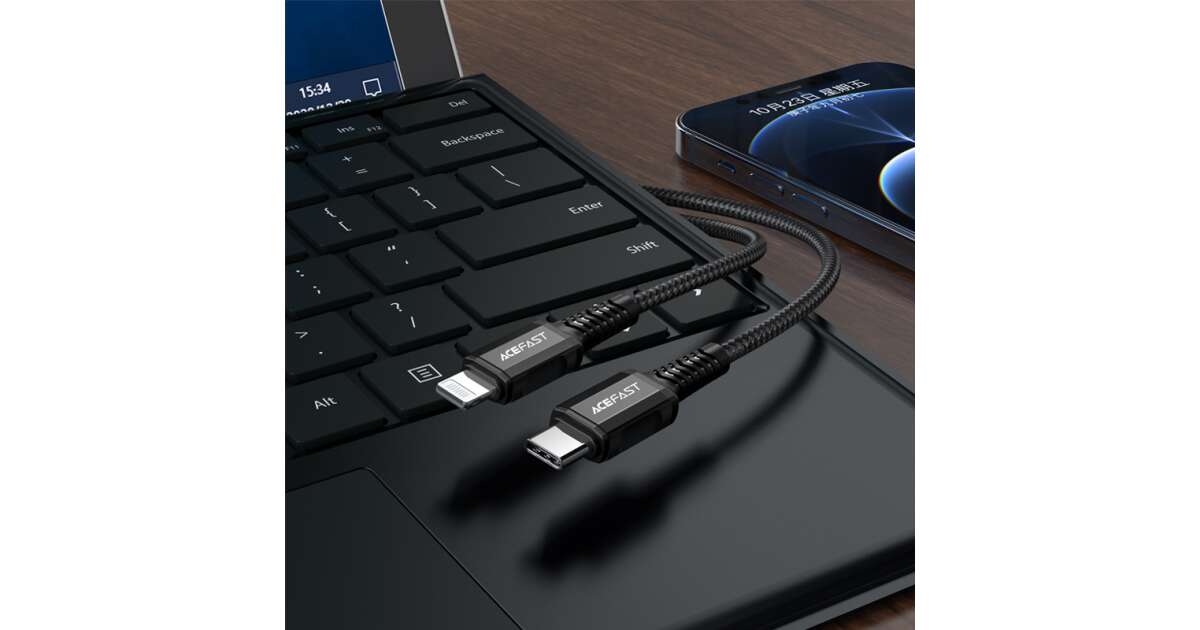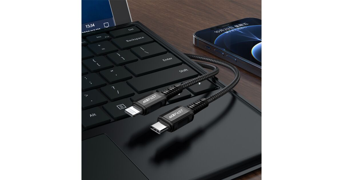Cablu de date si incarcare AceFast, USB-C, tip Lightning, Incarcare rapida, 1.2 m, Negru (C1-01) Descriere