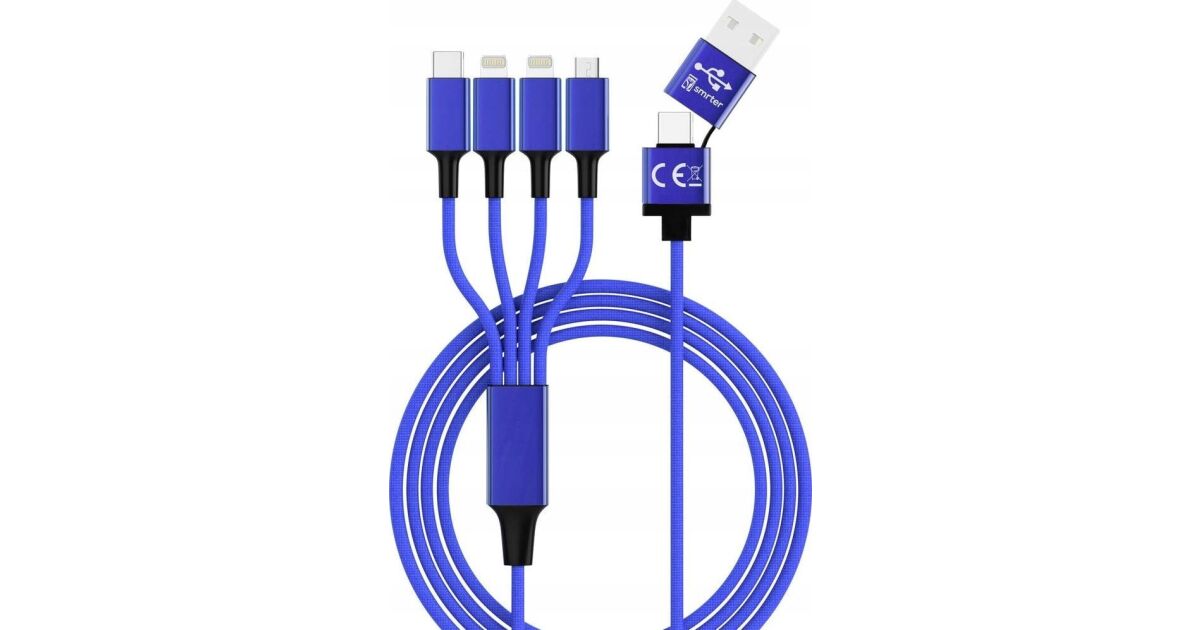 Cablu USB Smrter USB-A + USB-C - USB-C + MicroUSB + 2x Lightning 1,2 m Albastru (SMRTER_ELITE_L_NB) Descriere