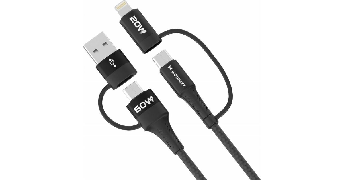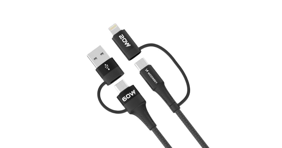 Cablu Wozinsky WNBAA 4w1, 2x USB-C, 1x USB-A, 1x Lightning, 60W, 1 m, negru Descriere