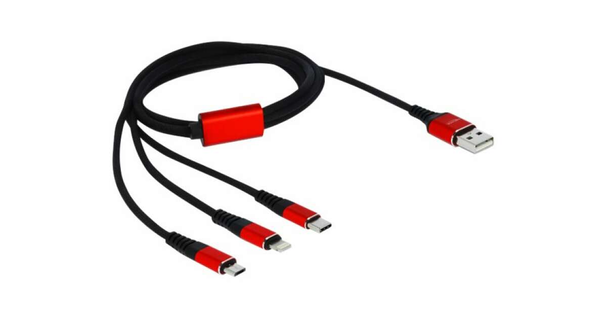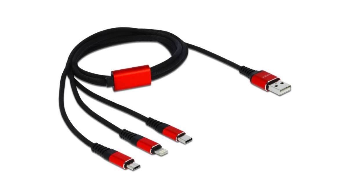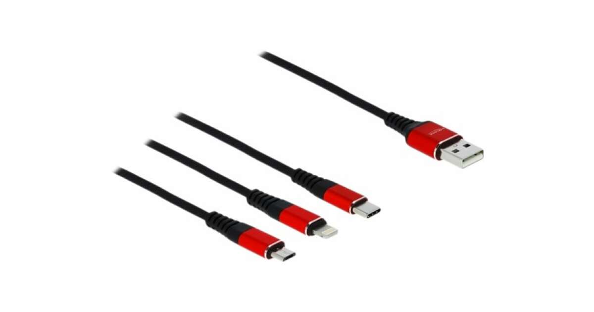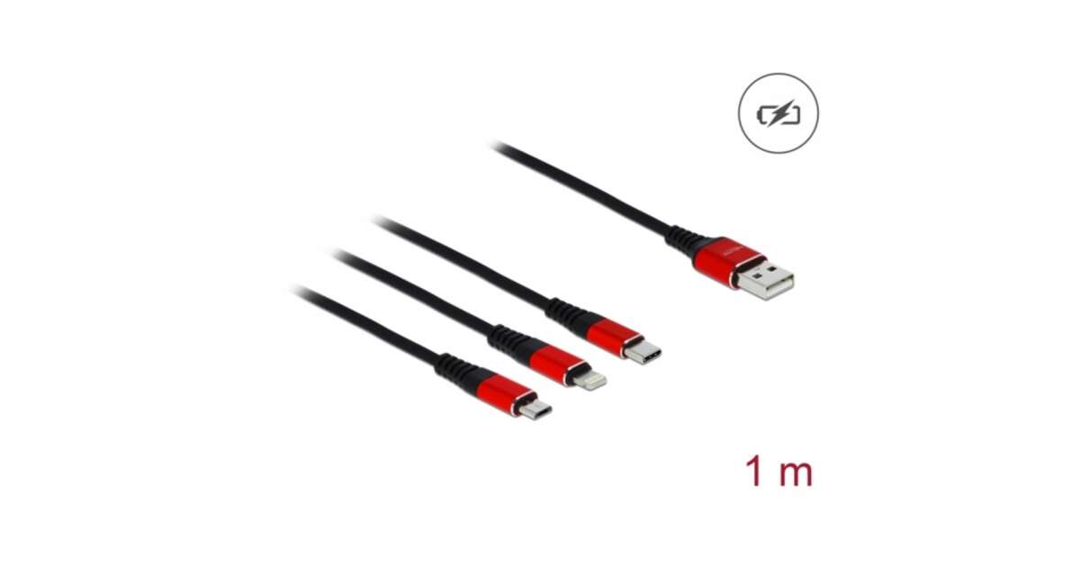DeLock Cablu de încărcare USB 3 în 1 pentru Lightning / microUSB / USB Type-C 1m Negru 85892 (85892) Descriere