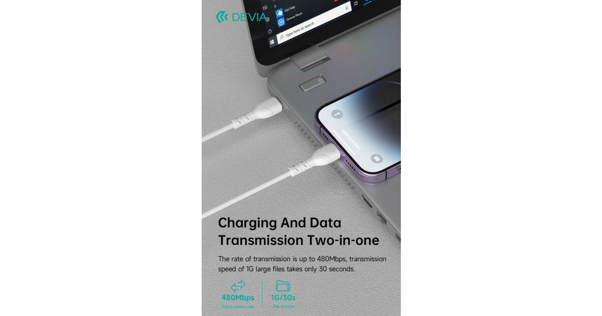 Bucură-te de încărcare rapidă și confortabilă cu acest cablu Devia de înaltă calitate!