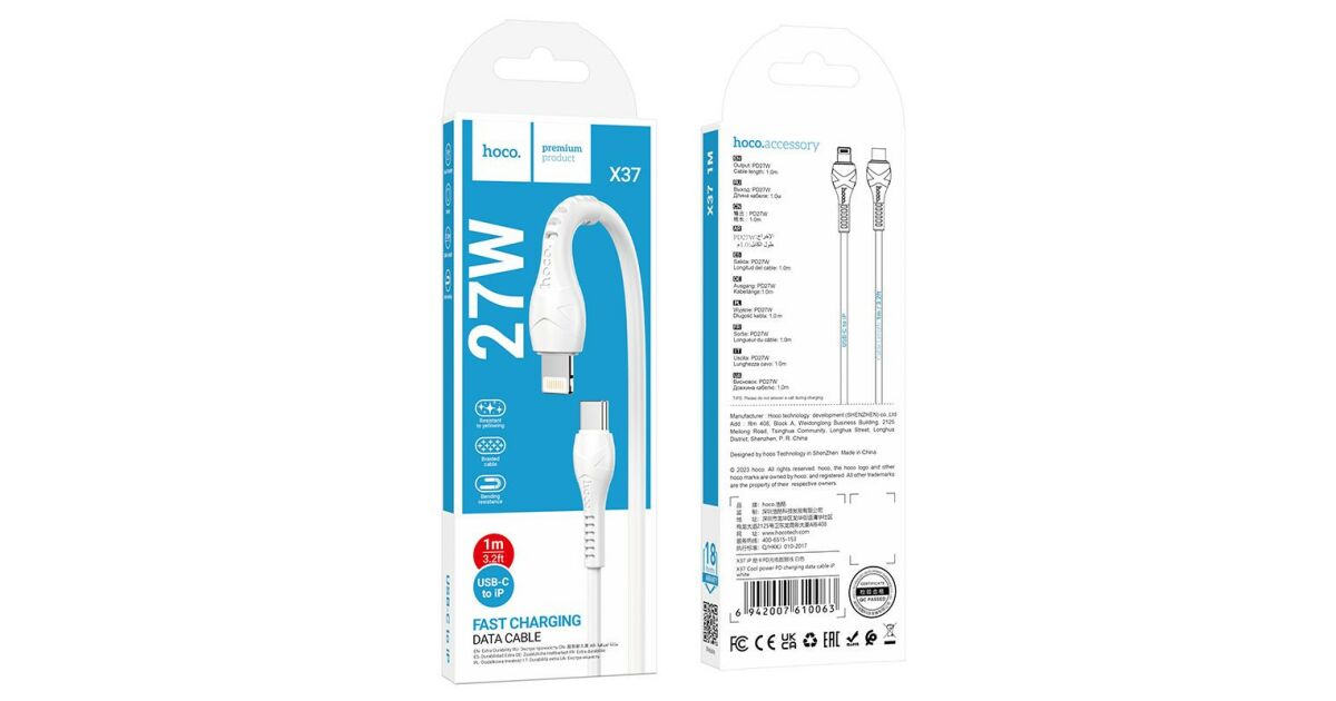 HOCO X37 COOL USB TYPE-C / CABLU LIGHTNING PD 27W 1 METR ALB Descriere