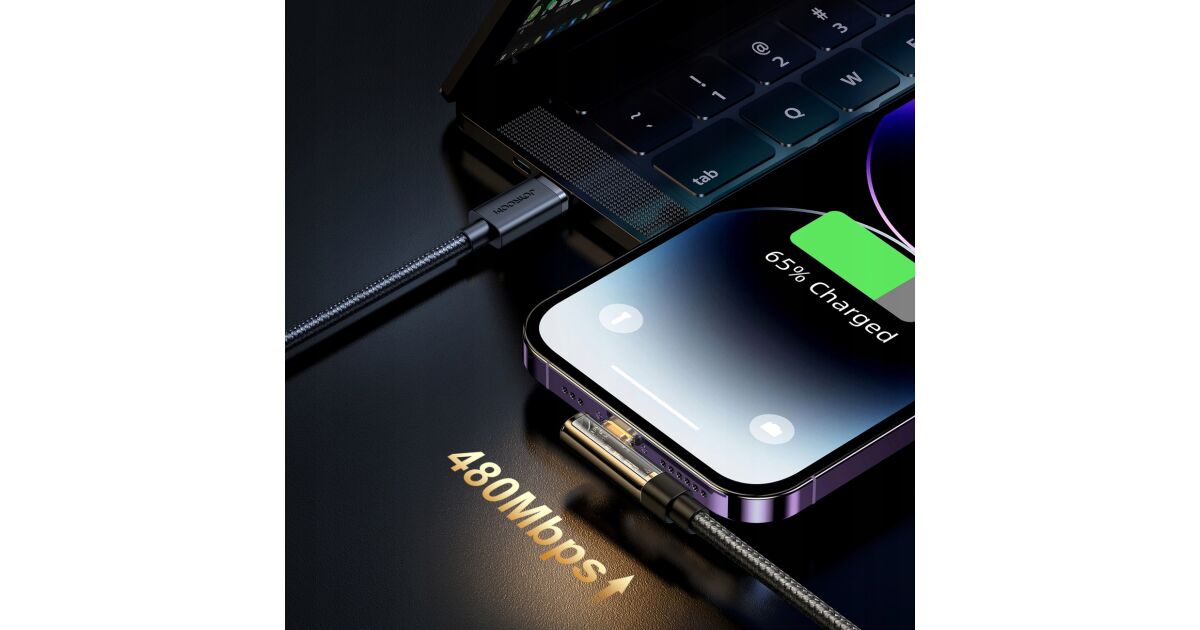 Alege cablul Joyroom USB-C Lightning la 90° și bucură-te de încărcare rapidă și utilizare confortabilă!