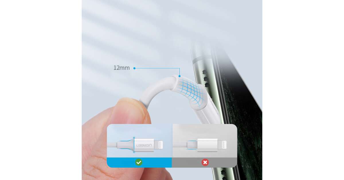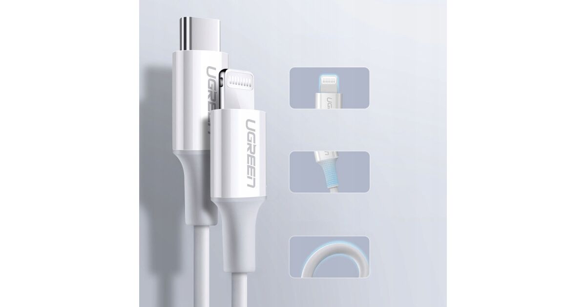 Cablu Ugreen MFi USB Type C - tip lightning 3A 0.5m white (US171) (60747) Descriere