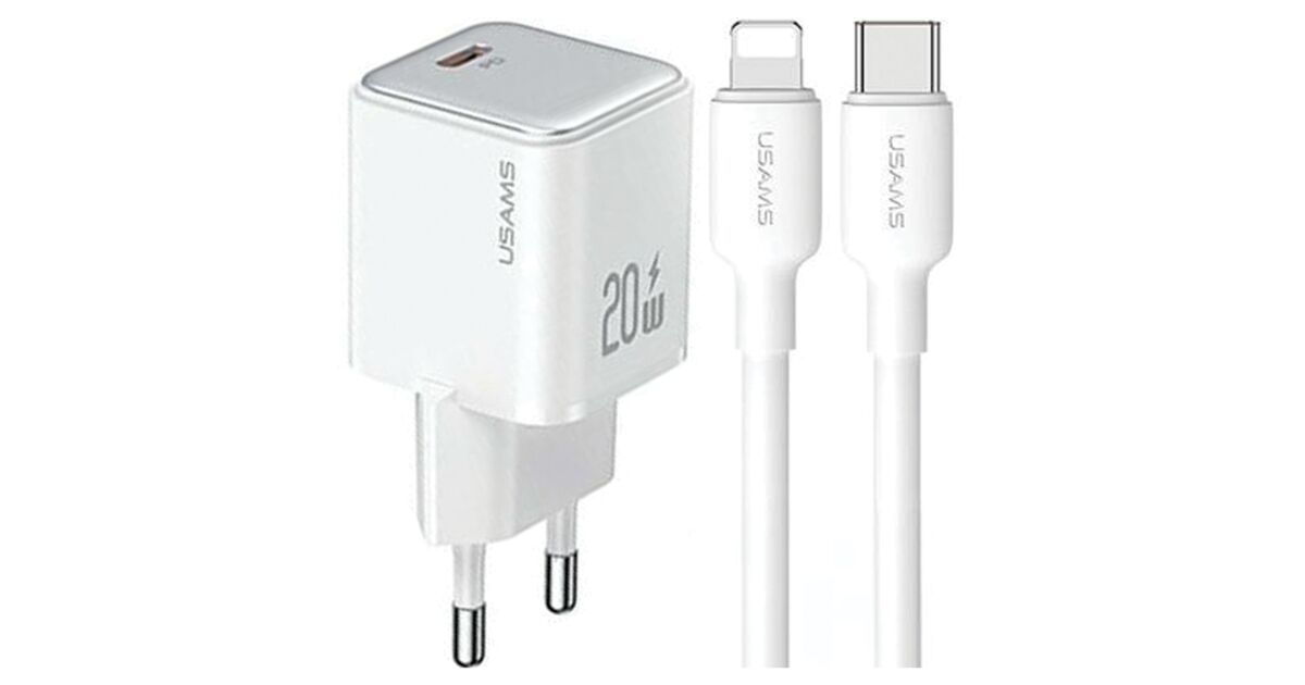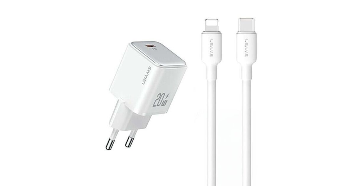 USAMS US-CC183 încărcător de perete USB-C 20W PD3.0 + US-SJ610 USB-C / Cablu Lightning alb Descriere