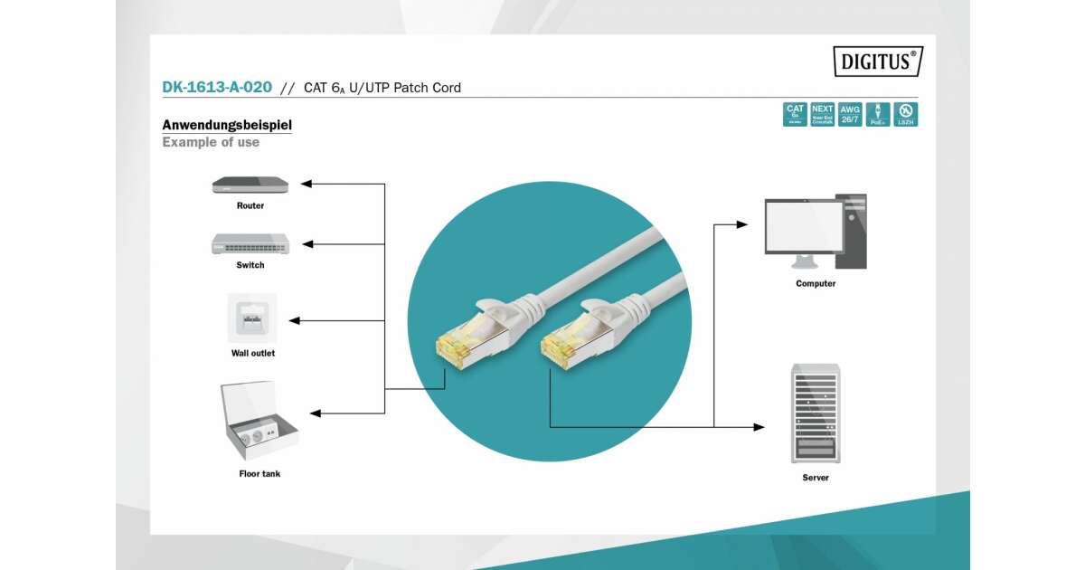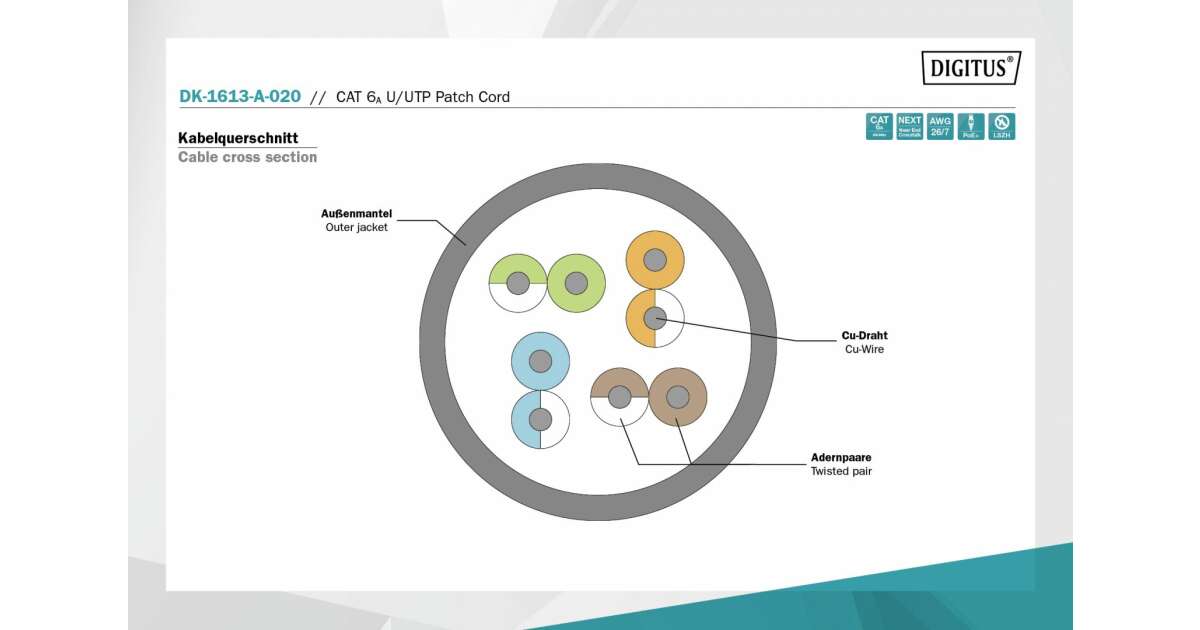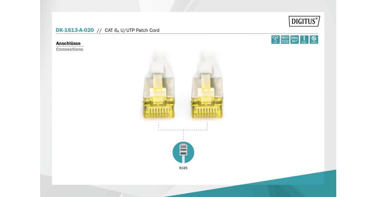 Cablu UTP Patch Cord UTP , Cat.6A, 2m, DK-1613-A-020 DIGITUS (DK-1613-A-020) (DK-1613-A-020) Descriere