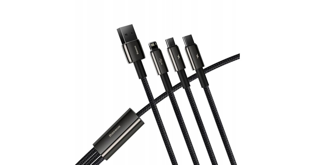 Cablu Baseus 3 în 1 Tungsten Gold USB la Micro USB / USB-C / Lightning 1,5 m Descriere