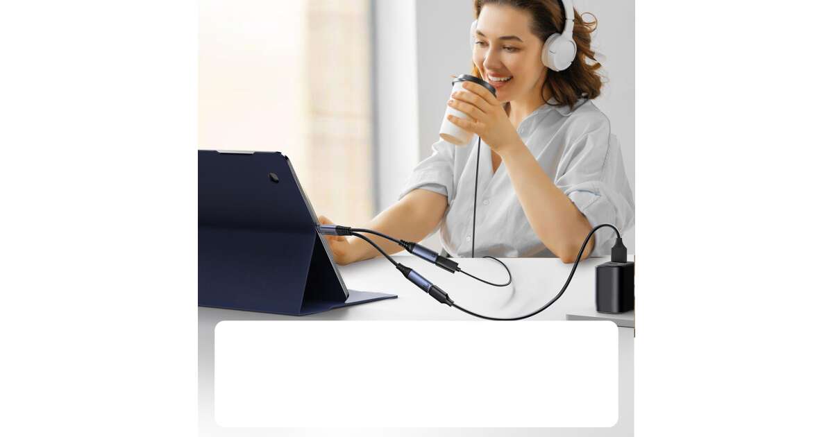 Acest adaptor compact Joyroom SY-C03 îți permite să asculți muzică și să-ți încarci dispozitivul în același timp. Dispune de două porturi USB-C: unul pentru încărcare (până la 60W) și unul pentru ieșire audio. Este ideal pentru călătorii, deoarece dimensiunile sale reduse îl fac ușor de transportat în geantă.