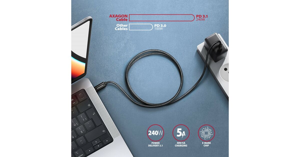 Axagon BUCM2-CM30AB USB-C USB-C cablu de date si incarcare, incarcare PD3.1 max 240W, 3m, negru opinii