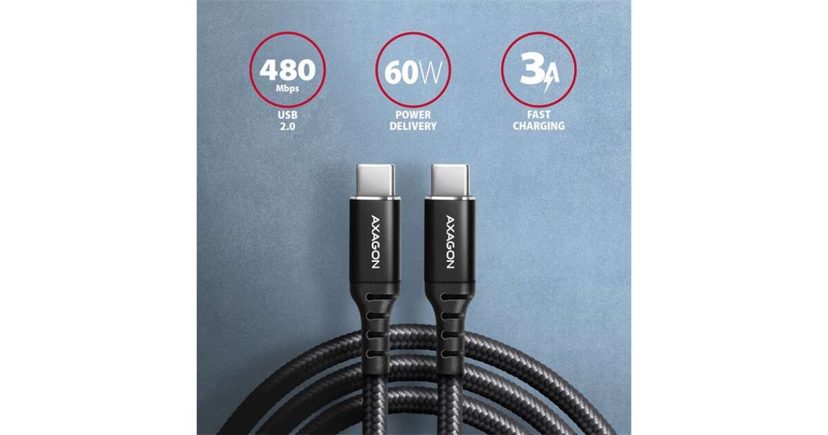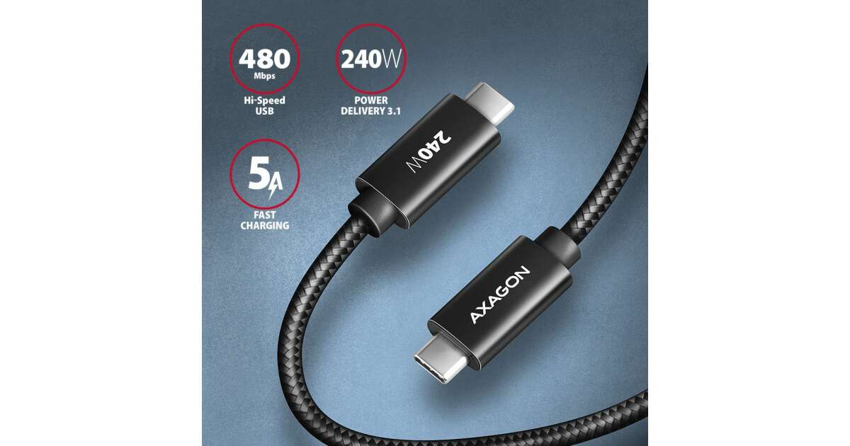 Axagon BUCM2-CM30AB USB-C USB-C cablu de date si incarcare, incarcare PD3.1 max 240W, 3m, negru