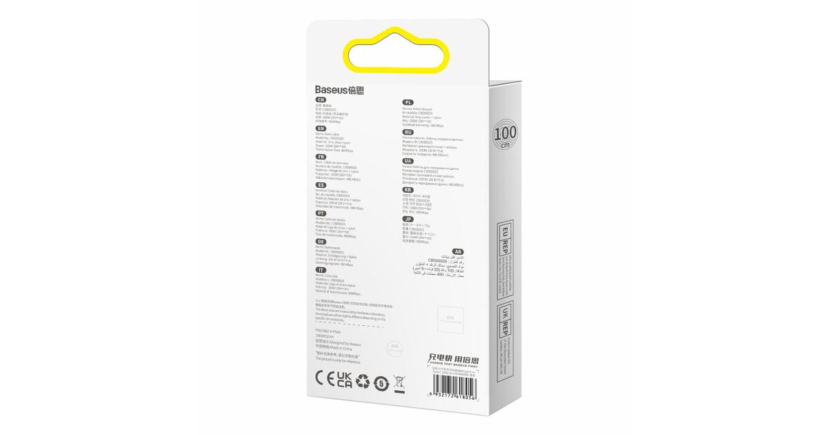 Acest cablu Baseus Glimmer USB-C - USB-C e perfect pentru orice dispozitiv care are nevoie de încărcare rapidă și transfer de date. Îți poți încărca telefonul, tableta, laptopul sau consola de jocuri cu o putere de până la 100W. Cablul de 1 metru are un cip inteligent E-Marker și un indicator luminos discret pentru o utilizare sigură.
