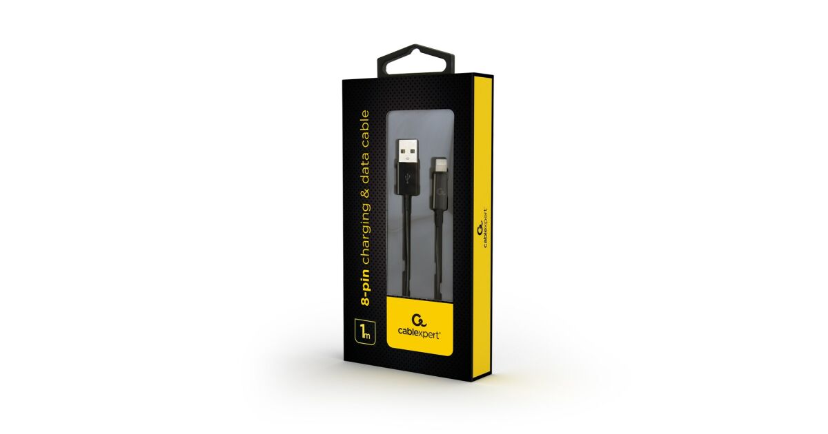 Cablu alimentare si date Gembird, USB 2.0 (T) la Lightning (T), 1m, Negru, CC-USB2-AMLM-1M (CC-USB2-AMLM-1M) (CC-USB2-AMLM-1M)