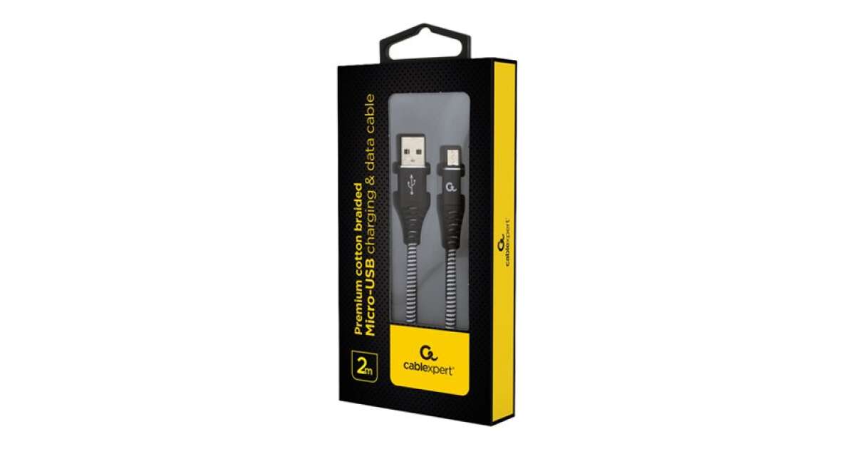 Cablu de date și încărcare Gembird USB-C - Micro-USB: Cu înveliș textil durabil, 2m